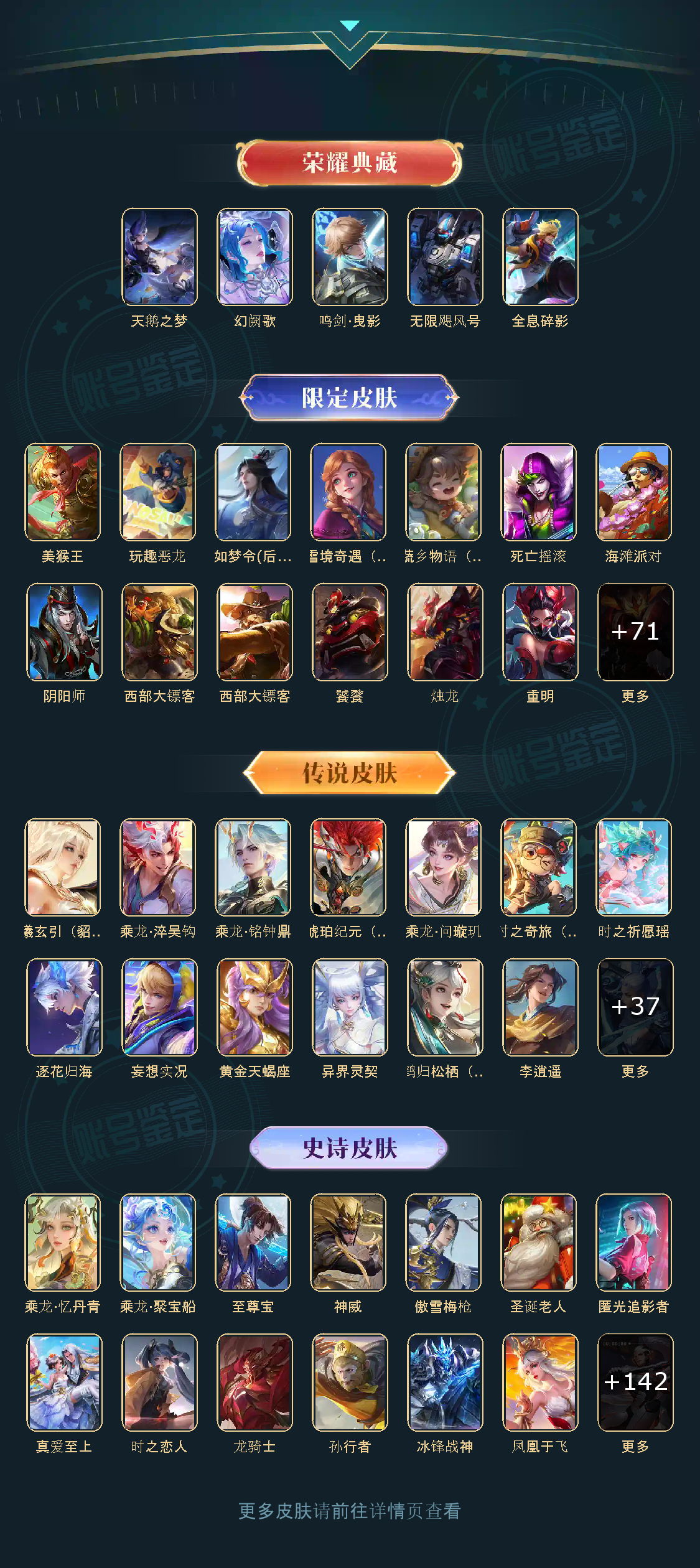贵族等级V10,英雄数量123,典藏皮肤数5,皮肤数量474,天鹅之梦/无限飓风号/全息碎影/鸣剑·曳影