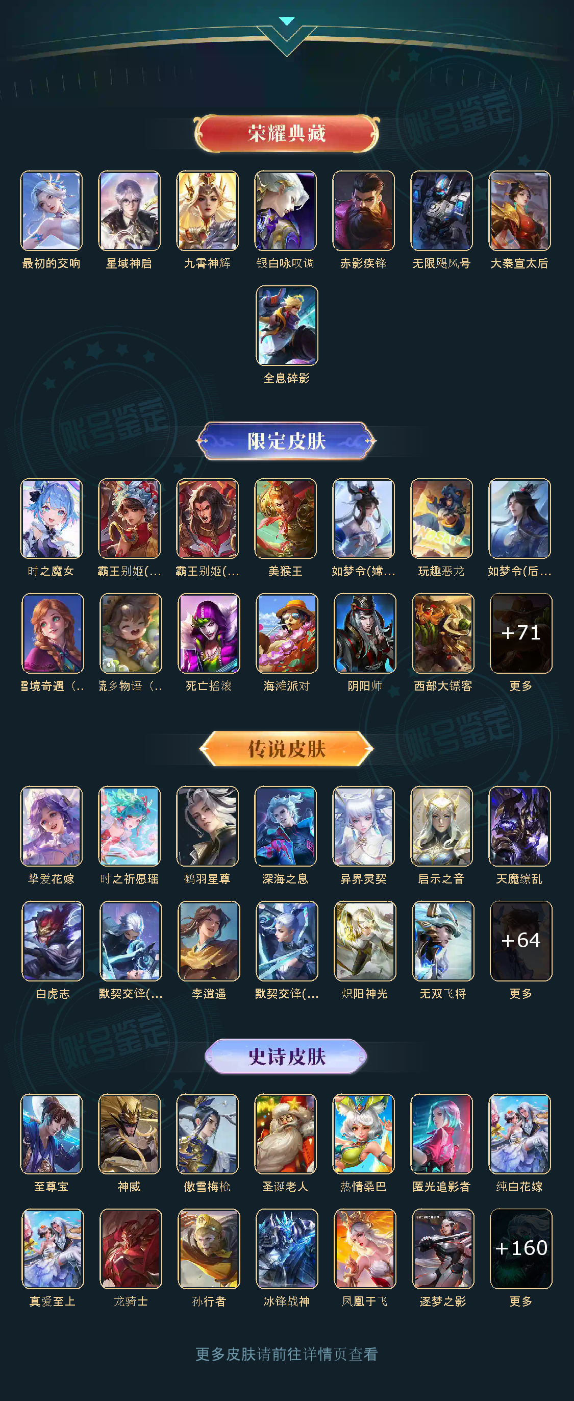 贵族等级V10,英雄数量123,典藏皮肤数7,皮肤数量517,