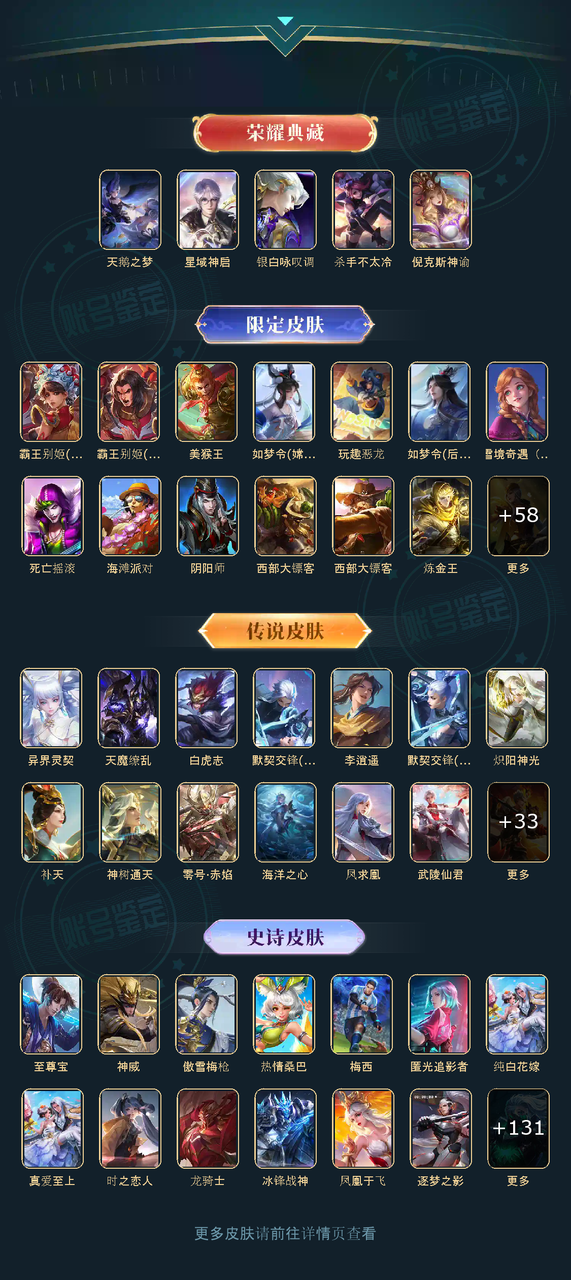 贵族等级V10,英雄数量124,典藏皮肤数5,皮肤数量422,