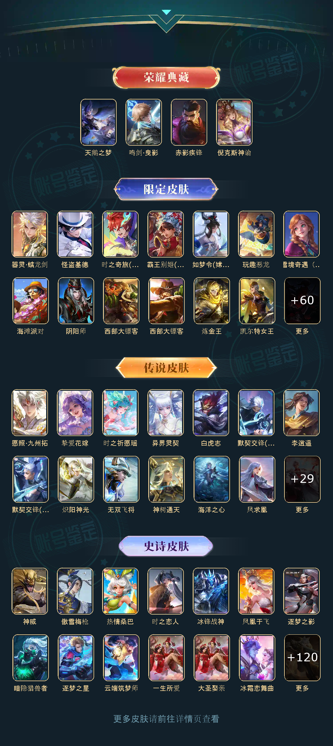 贵族等级V10,英雄数量124,典藏皮肤数4,皮肤数量403,天鹅之梦/倪克斯神谕/鸣剑·曳影/李逍遥