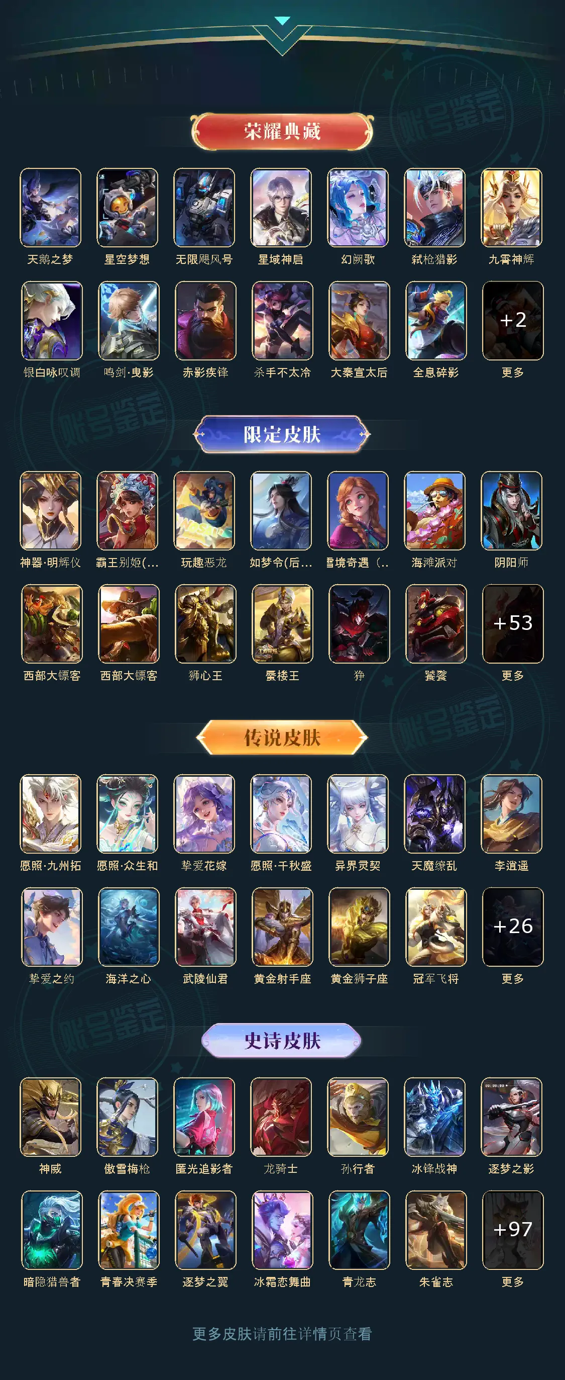 贵族等级V10,英雄数量125,典藏皮肤数15,皮肤数量385,