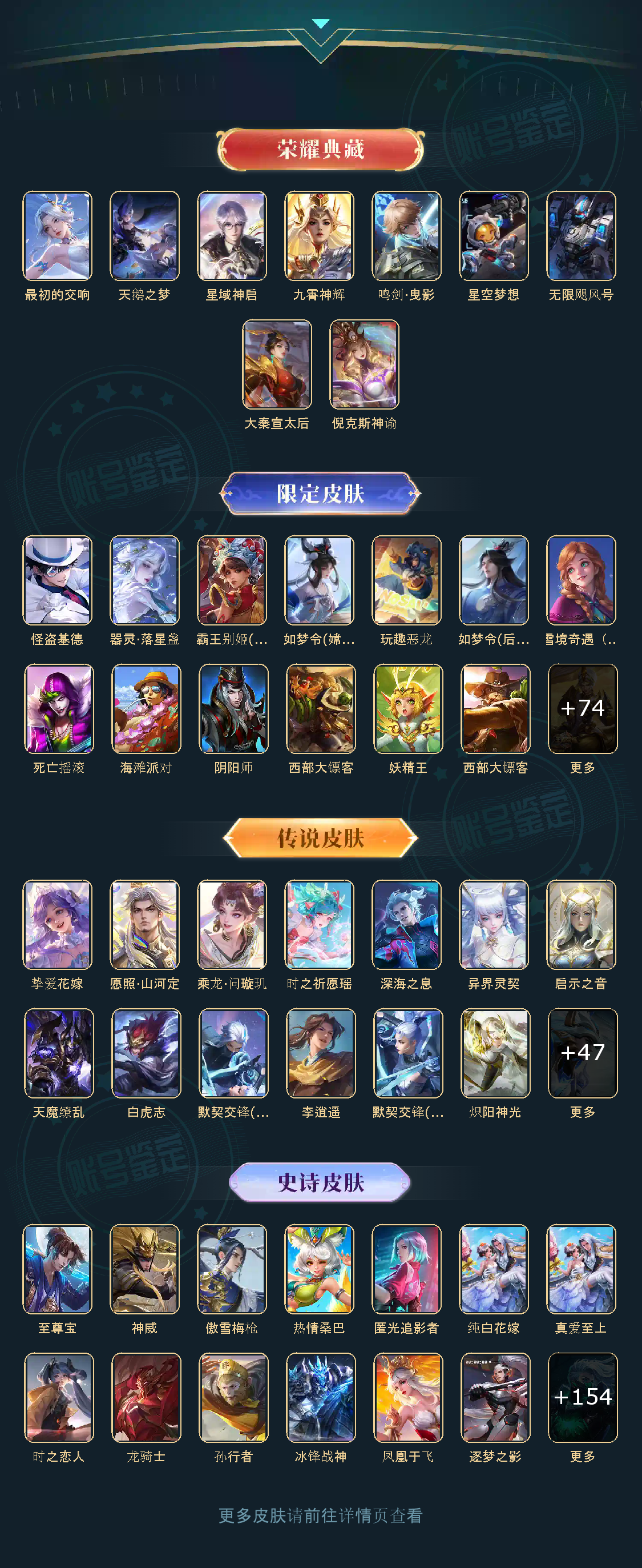 贵族等级V10,英雄数量124,典藏皮肤数8,皮肤数量488,