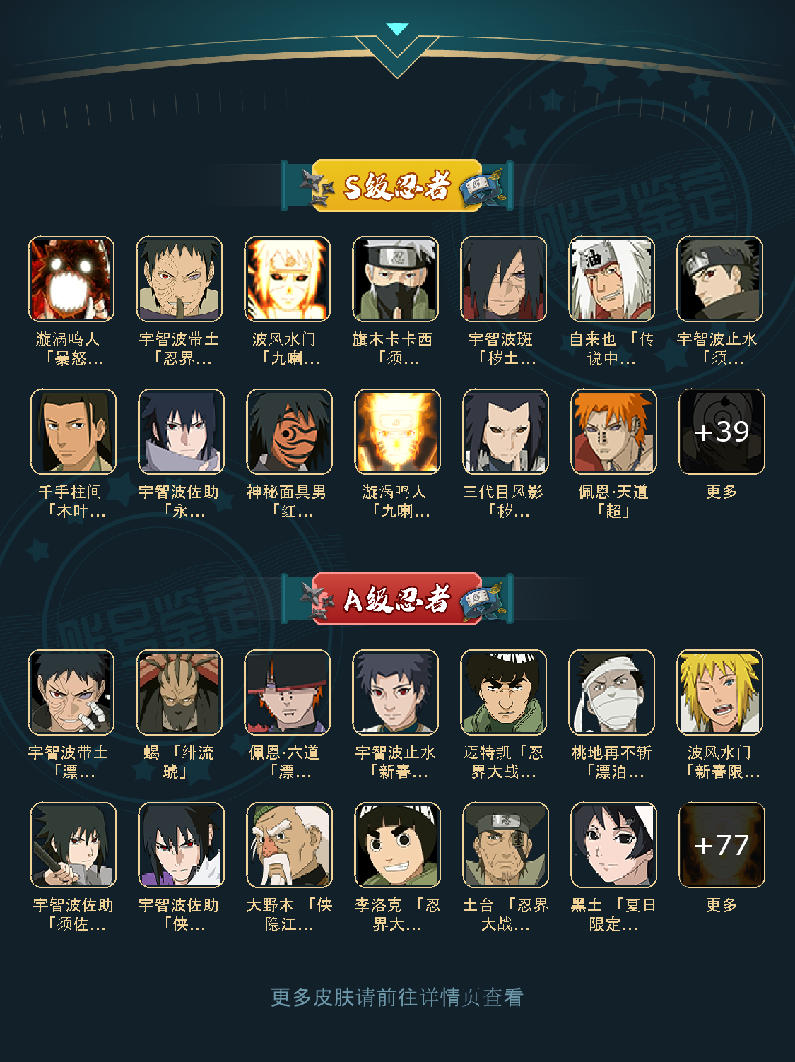 50S 83A 371忍者 宇智波带土「暴怒」/宇智波佐助「疾风传咒印」/迈特凯「忍界大战」/宇智波带土「忍界大战」/宇智波斑「木叶创立」/佩恩·天道「超」