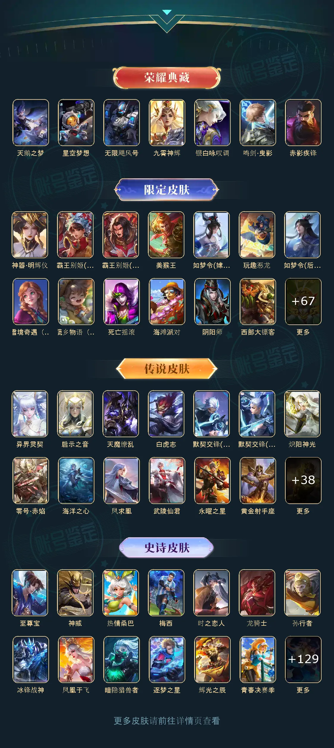 贵族等级V10,英雄数量122,典藏皮肤数7,皮肤数量447,