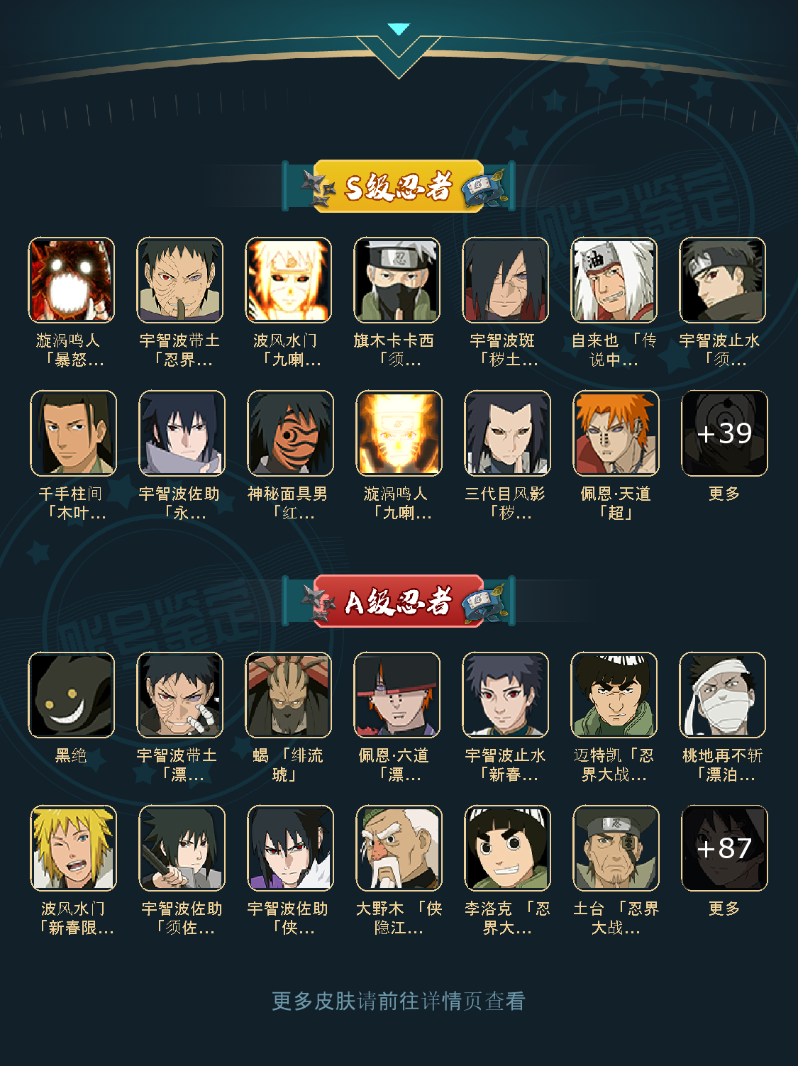 48S 91A 386忍者 宇智波带土「暴怒」/干柿鬼鲛「鲛肌融合」/宇智波佐助「疾风传咒印」/迈特凯「忍界大战」/宇智波带土「忍界大战」/宇智波斑「木叶创立」/佩恩·天道「波风水门「九喇嘛连结」机械鸣人「初始形态」宇智波佐助「侠隐江湖」