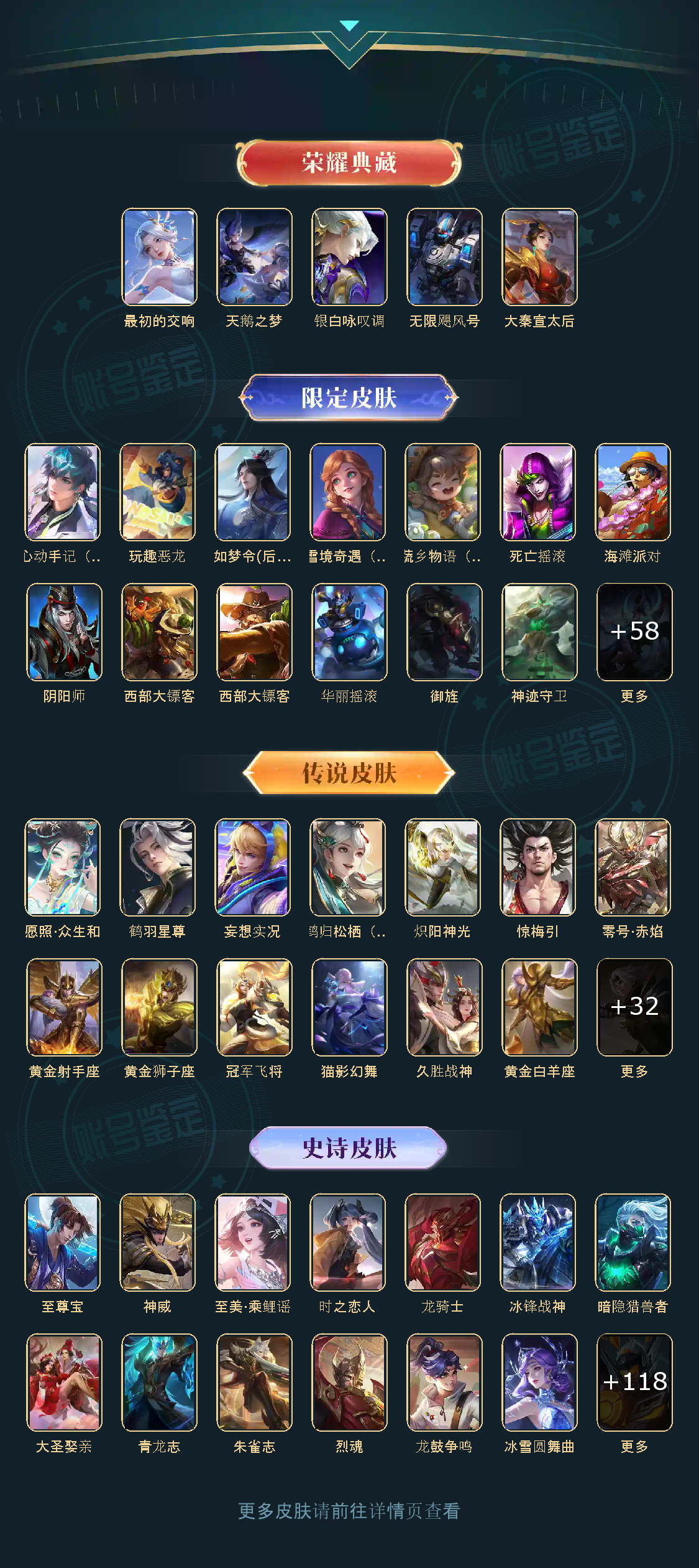 贵族等级V10,英雄数量123,典藏皮肤数4,皮肤数量422,天鹅之梦/无限飓风号