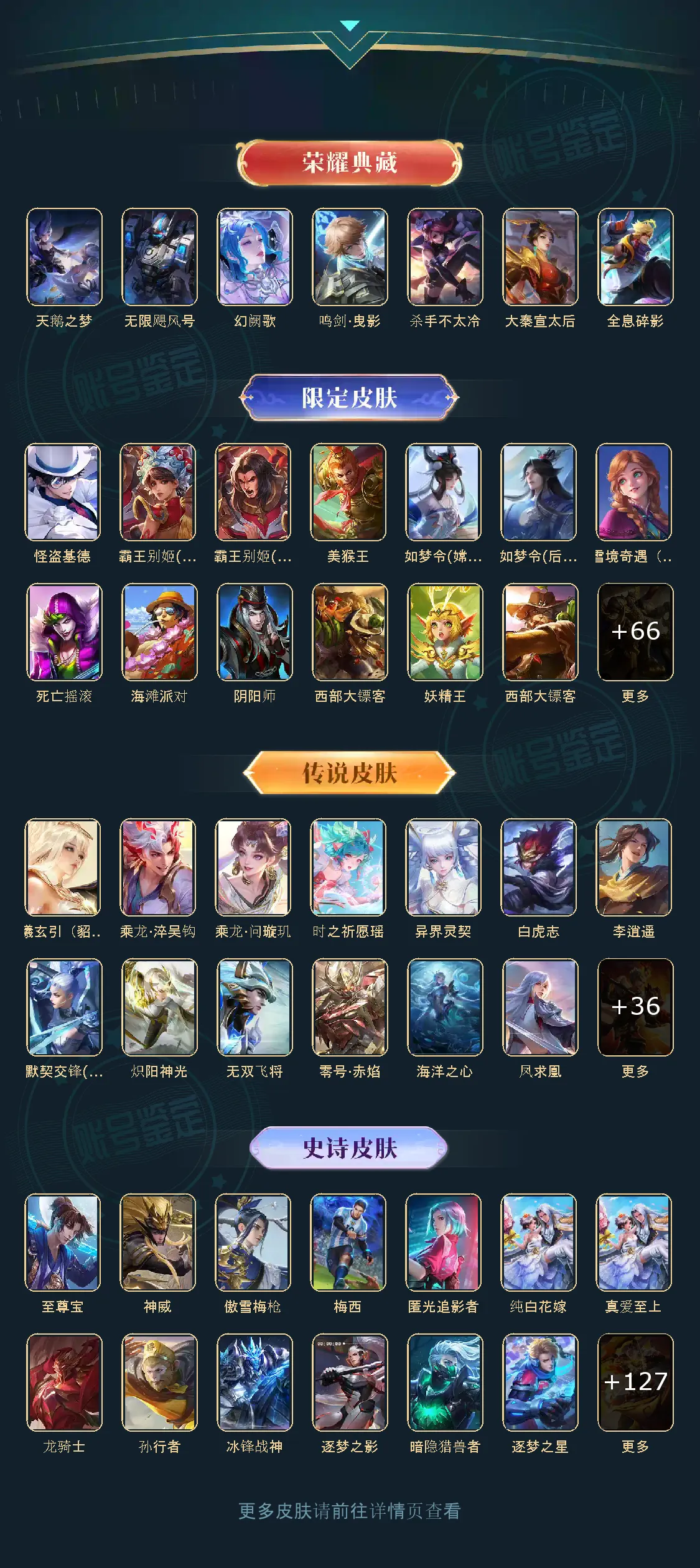 天鹅之梦,无限飓风号,鸣剑·曳影,幻阙歌,白虎志,李逍遥,默契交锋(花木兰),零号·赤焰,怪盗基德,炽阳神光,梅西,乘龙·问璇玑,乘龙·淬吴钩,至尊宝,神威,纯白花嫁,真爱至上,匿光追影者,无双飞将,时之祈愿瑶,曦玄引(貂蝉),异界灵契,傲雪梅枪