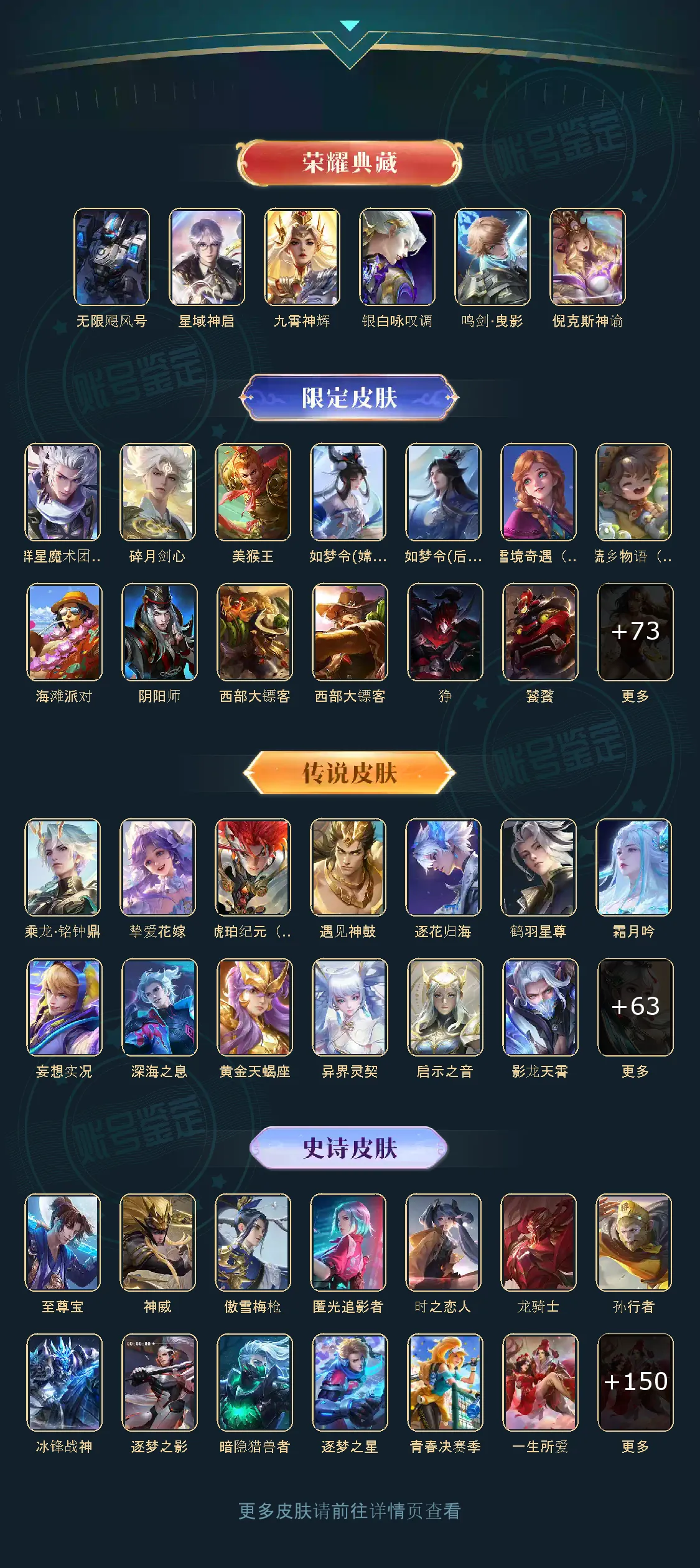贵族等级V10,英雄数量125,典藏皮肤数6,皮肤数量508,