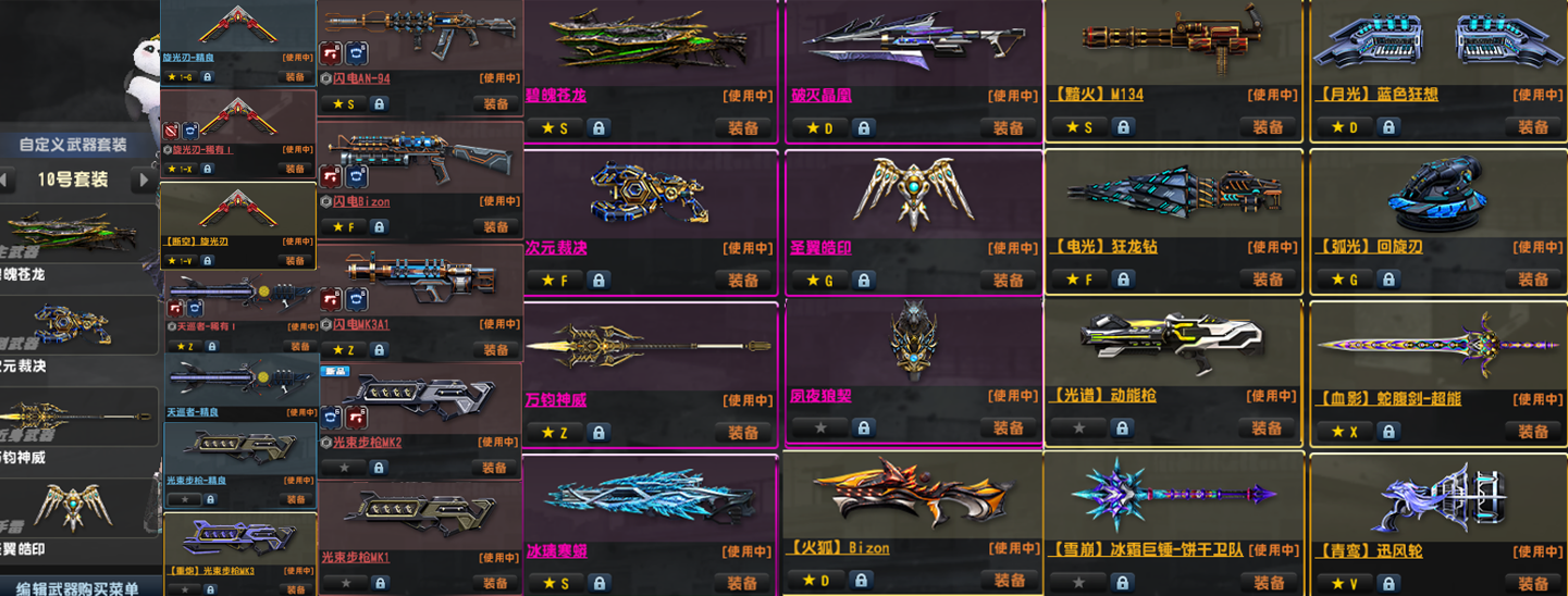 次紫钻●旋光刃●四件套五特典加特林火狐黯火●全年神冰璃寒蟒蛇神威次元夙夜狼雷●全赛季●闪电光束套