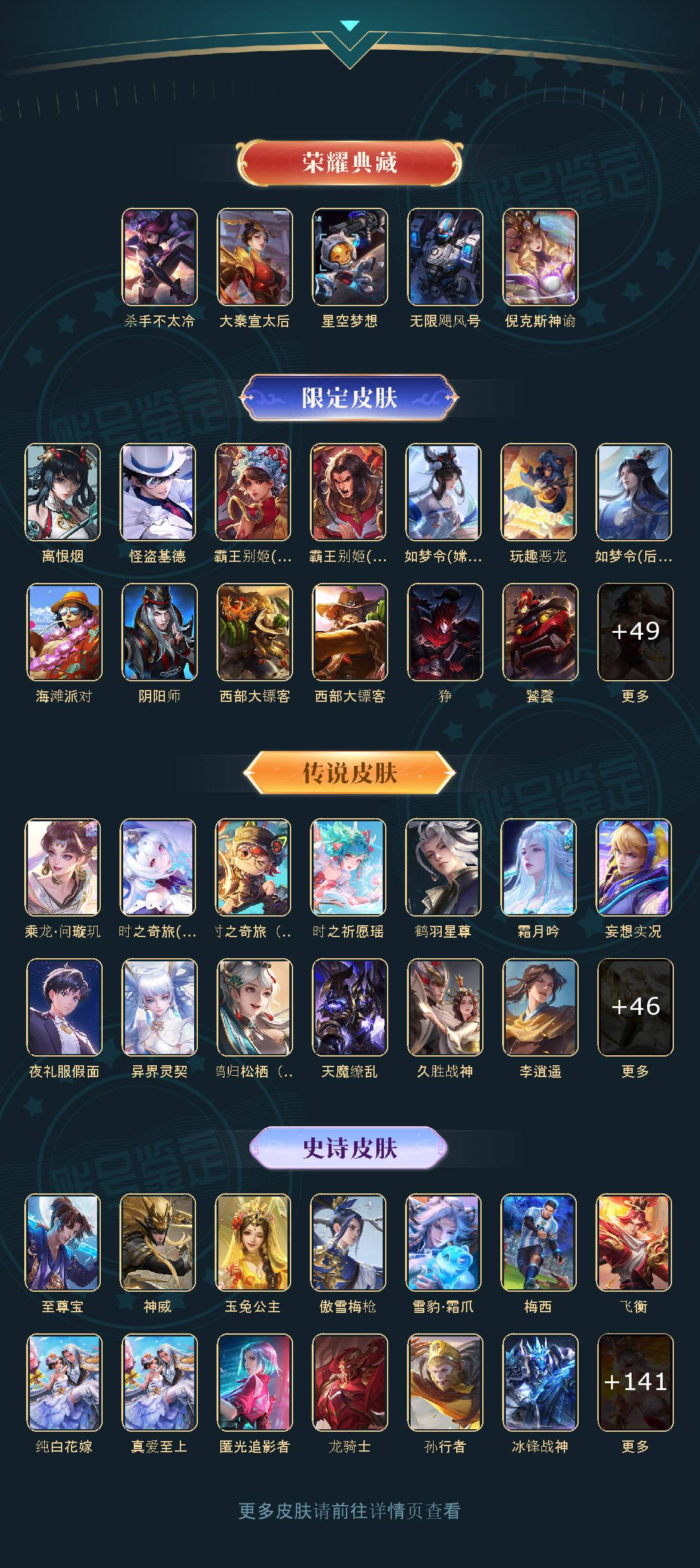 不要因为健慷系统维权 健康平台会补半个小时! 使用物品、骂人、挂机、信誉分>=4抠押金一律拉黑 新皮肤实时更新 押金无违规24小时自退 不足一局请续单或者下线谢谢~ 本账号已在福建省福州市公安局以私人财产形式真实登记备案! !本账号价值30万元人民币!!每一笔在本游戏消费 都有记录并且可查询!并且详细保留每一笔充值消费账单!如果恶意开挂、做挂车毁号、非法组队等恶意行为导致账号被封将按照我国刑法第二百七十五条故意毁坏财务罪将其定罪,涉嫌金额较大可判三年以上15年以下有期徒刑徒刑! 感谢支持!下单租用本账号即代表同意以上全部所述! !本账号一切损失都将保留起诉权利! 伤害队友导致禁止参赛或者封号的,拉黑处理并封禁租号账户。 订单由平台客服处理,号主无权处理。日租优惠 长期可谈 可以换喜欢的头像 贵族10 500皮号 满水晶满星元满铭文 购买之后点号主协助 要是遇到劲赛会补偿时间不要投诉我了 玩得愉快可以收藏起来 能给好评好了 希望善 待此号~~~~~~~~
