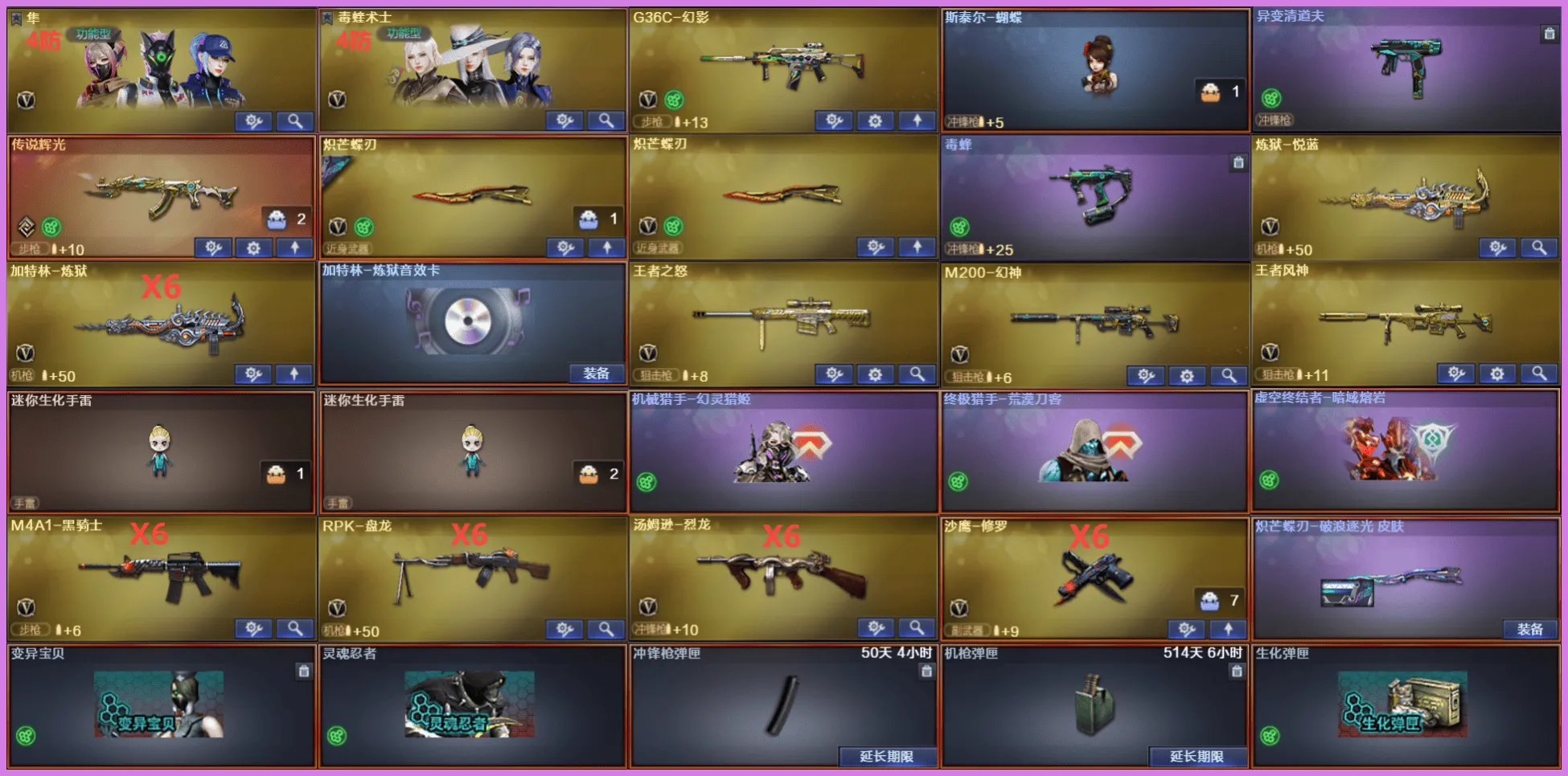 【允许排位】隼毒蝰炽芒蝶刃*2✅蝴蝶清道夫毒蜂炼狱音效卡幻影6盘6烈迷你雷*3满弹匣✅辉光王者风神幻神6黑6修