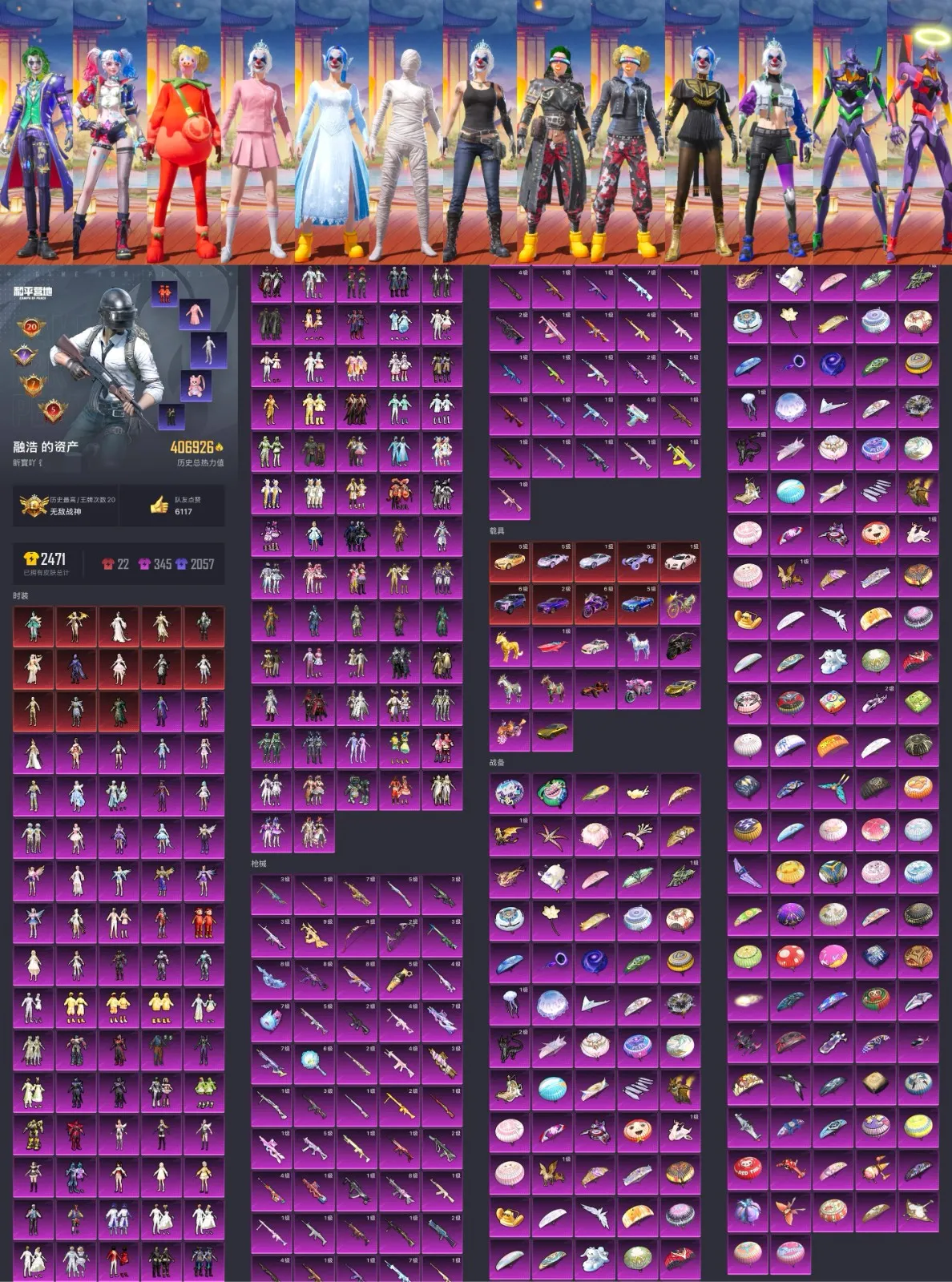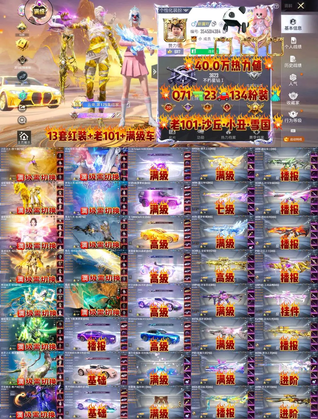 此号价值较高不文明游戏导致封号,一律按照充值金额起诉索赔毁号,禁止分解枪械车辆,恶意分解枪械车辆,一律起诉索赔,