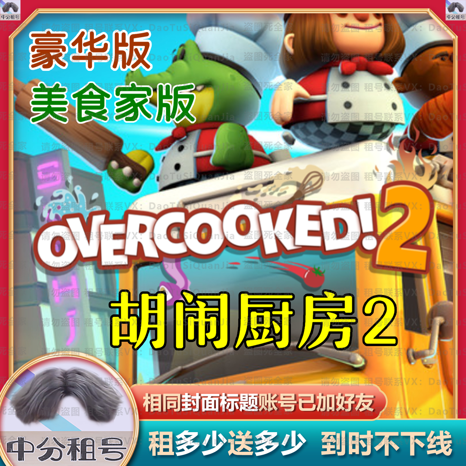 胡闹厨房2✨198元豪华版✅相同标题账号已互加好友✨美食家版❤️号主24小时在线帮您加好友♋中分租号