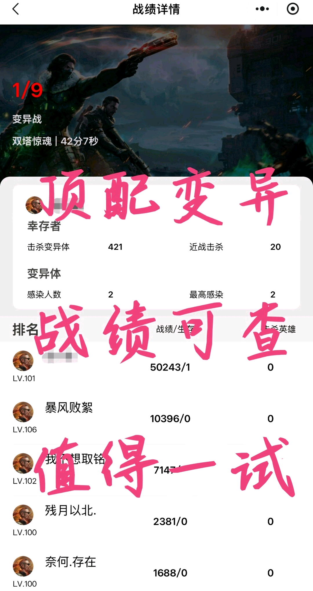 ◆各类变异模式:人类Max295血量 + 30%减伤 + 血清反弹✓