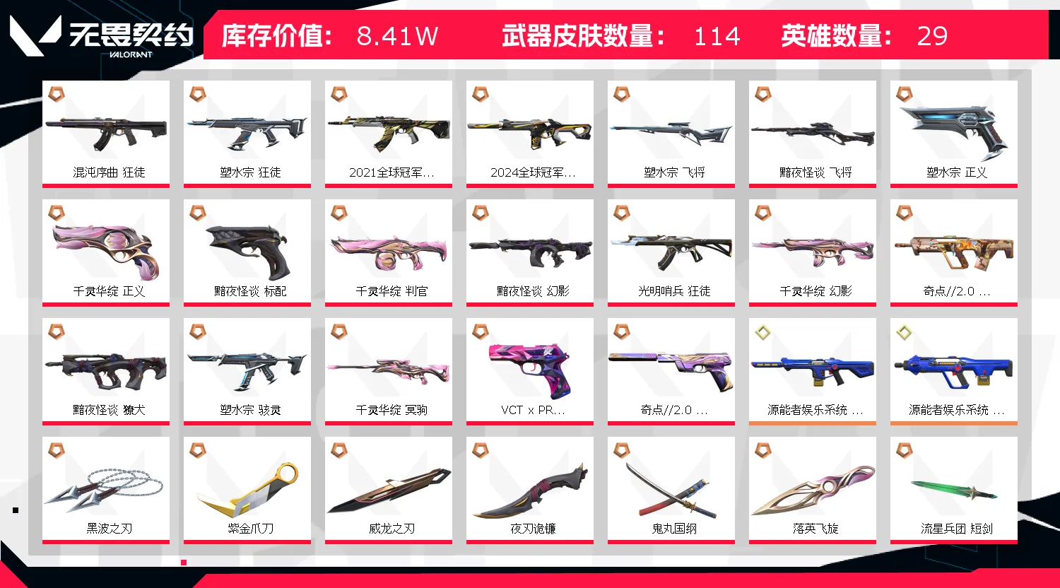- 武器皮肤数量: 114