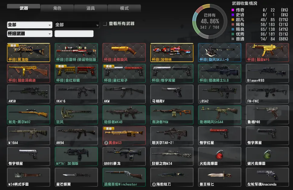 1、怀旧末日炮斧电锯关刀雷神、感染枪,全模式可玩,感染枪应有尽有,美女角色多多,已去黑雾,性价比很高的一个号,喜欢就收藏哦,祝你游戏愉快!