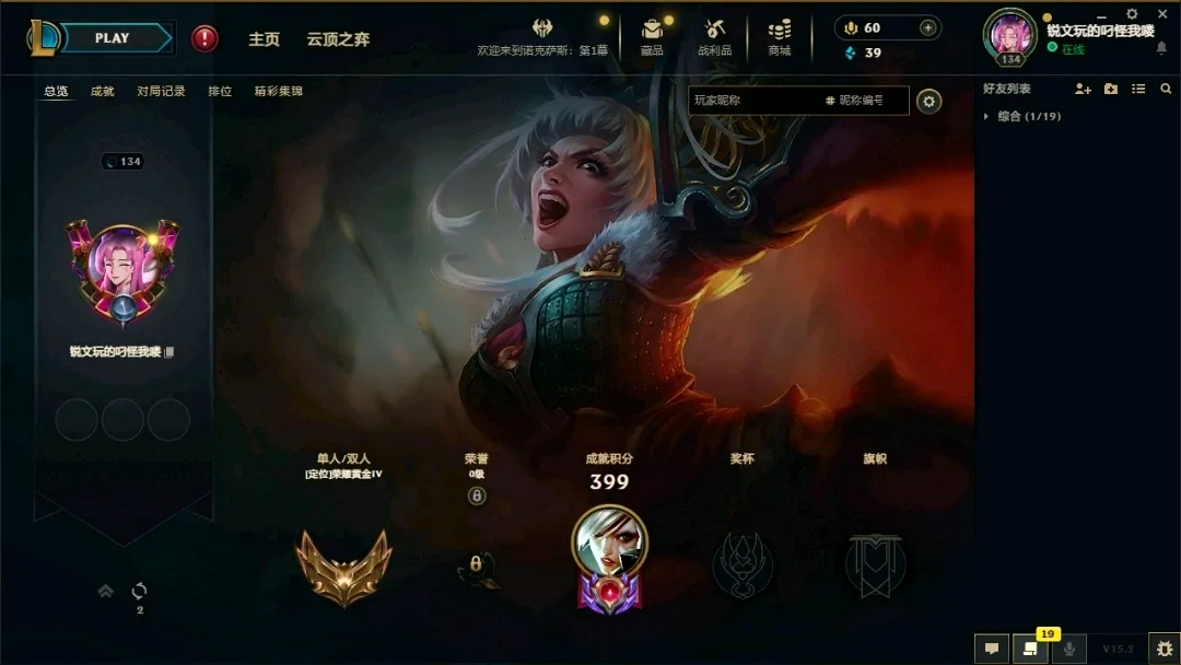 - 云顶段位: 英勇黄铜Ⅳ