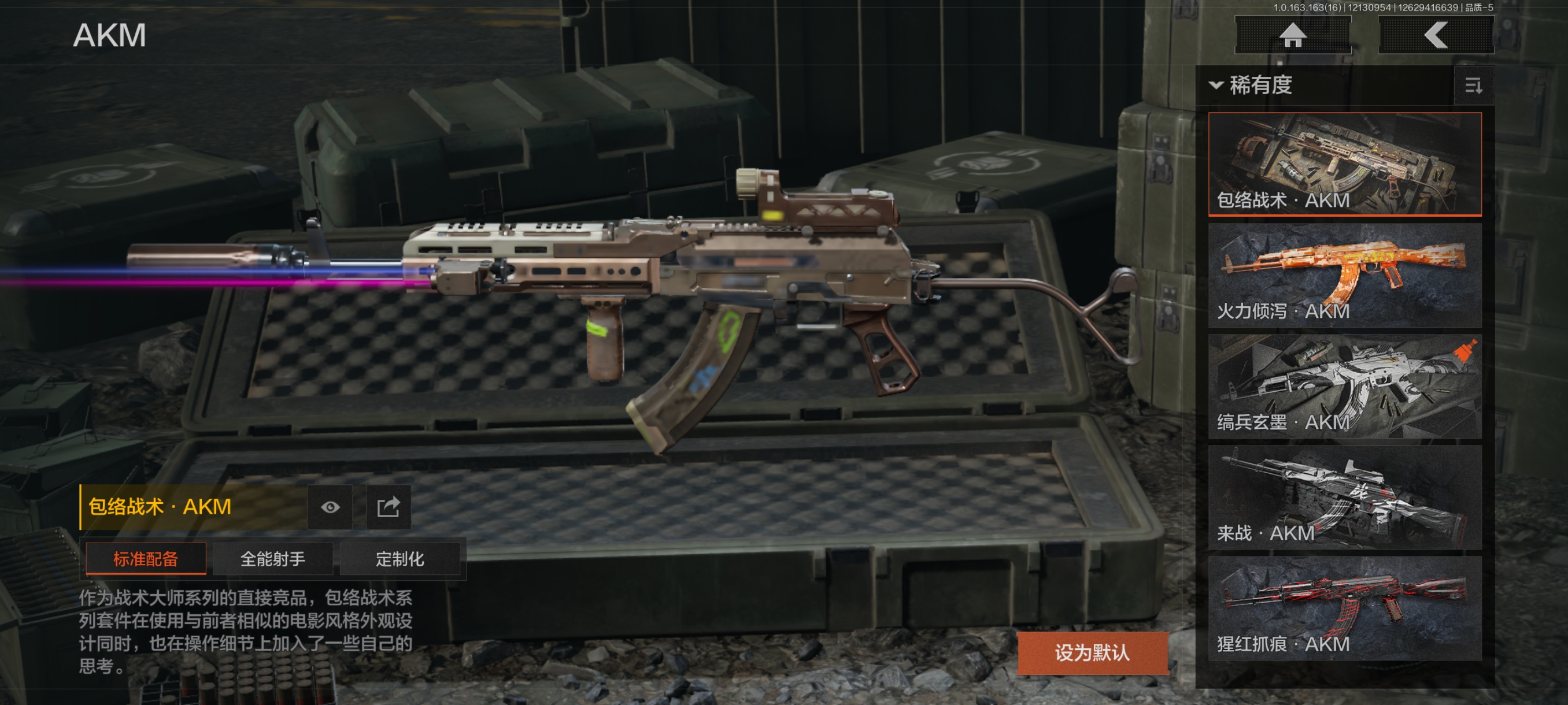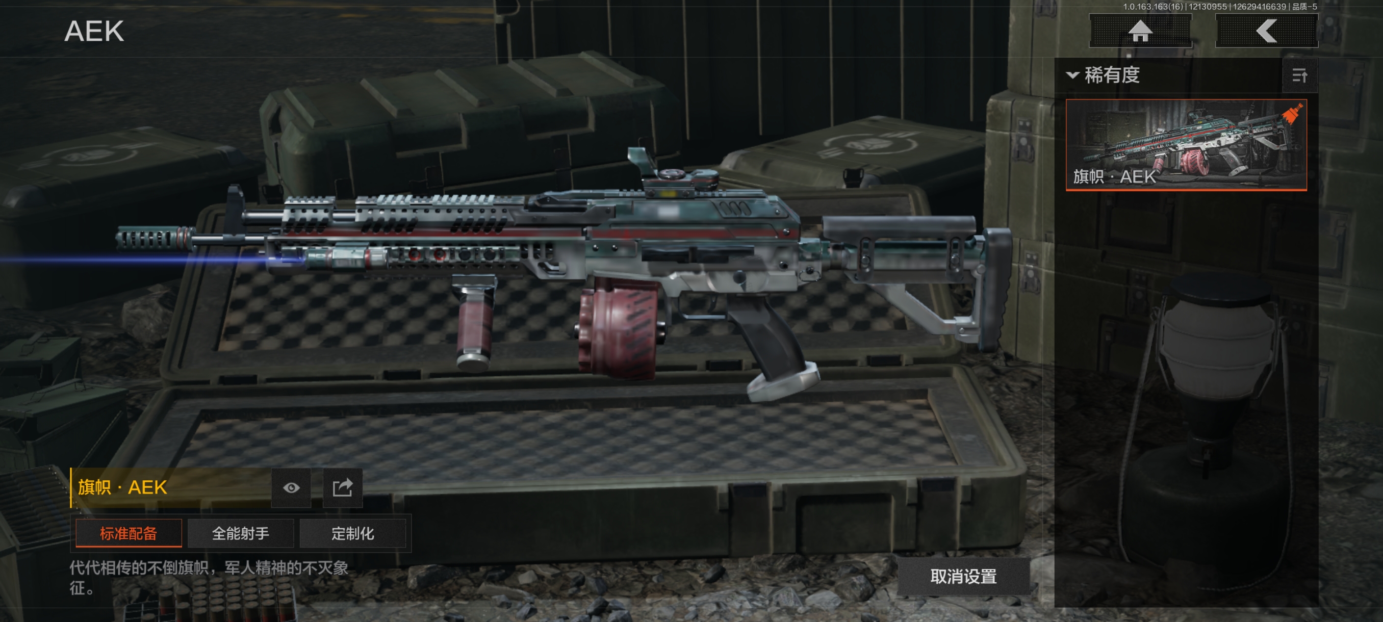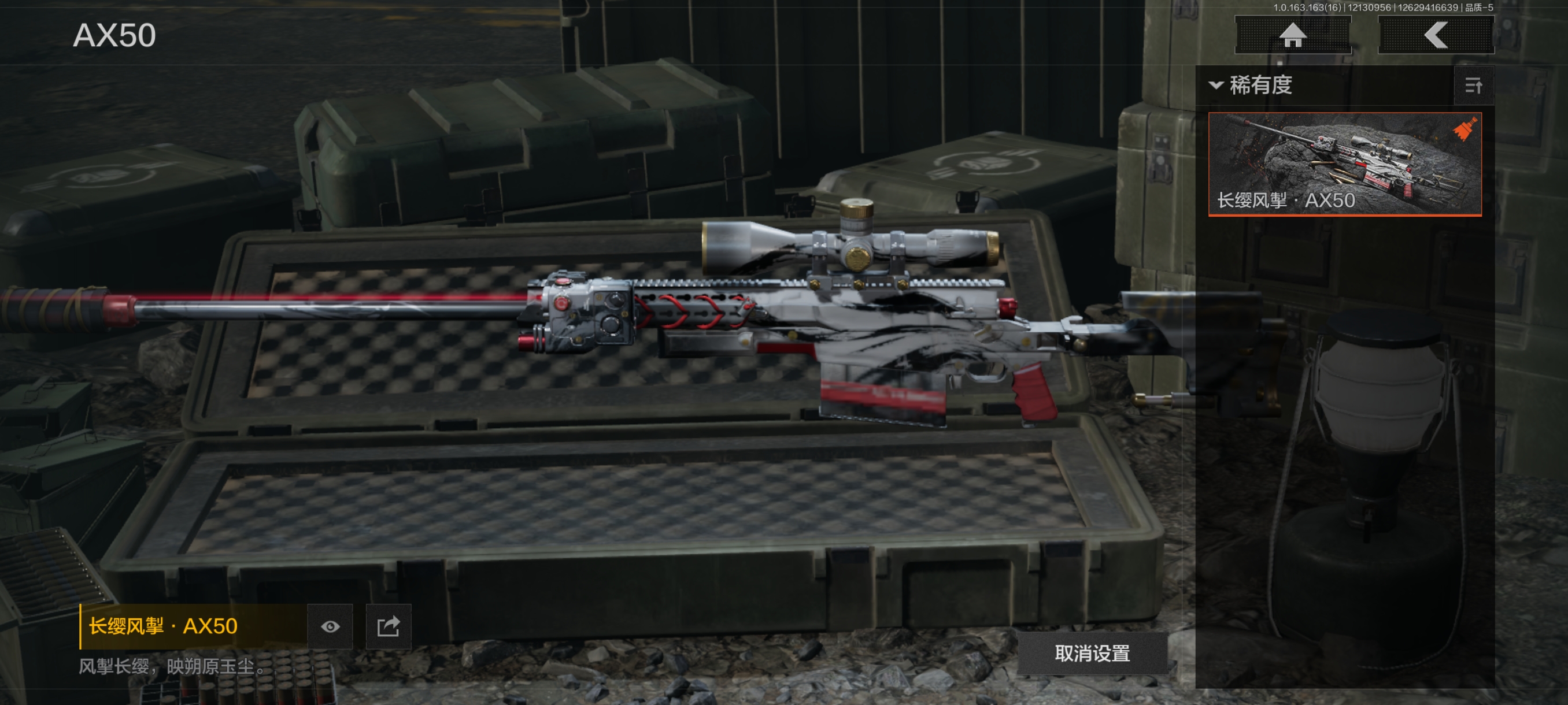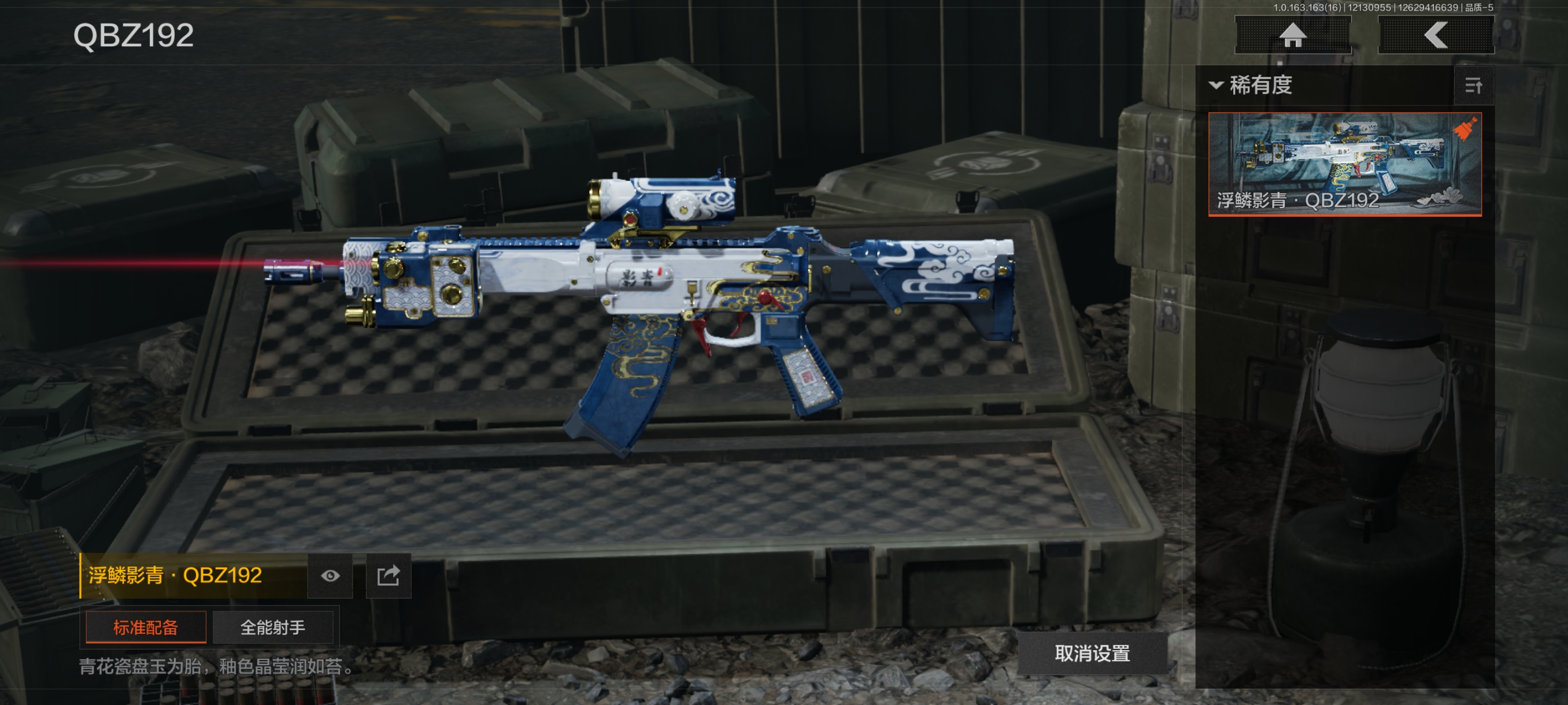 30级,历史最高段位:暗区传说【近战武器】:瀚星斩铁,三尺万仞战术剑,瑞兔折刀,野战折刀,突击匕首,工兵铲,来战开山刀;【手套】:玉鸾挂枝手套,角弓得控手套;【角色皮肤】:都护铁衣战术甲胄,城市户外运动套装,王国卫队礼装轻装,森林守望特种服,街区守卫;【突击步枪】:包络战术AKM,火力倾泻AKM,来战AKM,缟兵玄墨AKM,猩红抓痕AKM,潜渊蛇鳞M4A1,德尔塔小队M4A1,黑金国际M4A1,特遣小队M4A1,秋宴FAL,自喷网格H416,正在骇入MDR,玄墨披挂MDR,北国内卫MDR,洞窟遗迹AK102,玄墨披挂AK102,鱼跃丹青AK102,来战AK74N,山地伪装AK74N,骑士之剑AKS74U,火绒AKS74U,竞技AUG,雪山之王F2000,炎夏浪花AR57,涂绘猎人AR57,骑士之剑ACE31,湖冰倒影ACE31,深粉玫瑰ACE31,旗帜AEK,粉绒臻选AN94,北国内卫AN94,虎纹Groza,绿松石数码Groza,虎纹FAMAS,青瓷涂层SCAR,四色花SCARL,绿松石数码T951,巡林客T951,百锻寒芒T951,黑石纹T951,森林迷彩T951,百锻寒芒T03,虎纹T03,缟兵玄墨T03,玄戈梨花T03,林地数码T03,沙海AK12,北国内卫AK12,沙海MCX,典礼武备MCX,危险地带MCX,07式林地迷彩QBZ191,浮鳞影青QBZ192,绿松石数码9A91,绿海猎手AR15;【冲锋枪】:猩红抓痕MP5,空勤特遣MP5,森林迷彩MP5,湖冰倒影MP5,缟兵玄墨MPX,玄戈梨花MPX,雪山之王MPX,激流MPX微型冲锋枪,无彩调色P90,冬日精灵P90,洞窟遗迹UZI,自喷网格UMP45,滑雪季UMP45,殷红渐变MAC10,北国内卫MAC10,黑石纹M3A1,危险地带M3A1,荒漠涂绘T79,镀铬寒铁T79,沙色Vector45,北国内卫Vector45,神锋Vector45,绿松石数码T85,山地伪装Vector9,都市黄Vector9,长缨风掣Vector9,竞技Vector9,滑雪季Suomi,战术大师Suomi,;【射手步枪】:旗帜SVDS,玄墨披挂SVDS,猩红羽翼VSS,白狼连队VSS,骑士之剑VSS,旧王圣谕VSS,炎夏浪花VSS,缟兵玄墨VSS,玄戈梨花VSS,典礼武备MK14,骑士之剑MK14,旗帜脉冲M110,玄戈梨花M110,全地形数码M110,缟兵玄墨M110,绿松石数码DBR,危险地带T88,绿松石数码QBU191;【栓动步枪】:滑雪季莫辛,黑石纹莫辛,长缨风掣AX50,北国内卫AR30,城市数码SJ16,战术大师SJ16,骑士之剑SJ16,绿松石数码SJ16,数码猎人M24,滑雪季M24;【轻机枪】:长缨风掣RPK16,旗帜RPK16,北国内卫RPD,虎纹M249,典礼武备M249;【霰弹枪】:玄墨披挂MP133,北国内卫MP133,沙海S12K,沙海USAS12,雪地数码USAS12,营房暖冬USAS12,无畏USAS12,真实之眼SPR310,火漆DP12,雪原凌锋DP12;【卡宾枪】:粉绒臻选SKS,绿松石数码SKS,多边棱彩M96,沙海Mini14,洞窟遗迹BM59,滑雪季BM59,虎纹BM59,沙海SVTU,敬伙伴M16,北国内卫M16;【手枪】:碳黑M9A3,黑石纹G18C,午夜梦魇G18C,雪山之王G18C,洞窟遗迹沙漠之鹰,绿松石数码沙漠之鹰,北国内卫沙漠之鹰,青瓷涂层T05,水蓝F57,水蓝F57,滑雪季F57,黑白回纹M300;