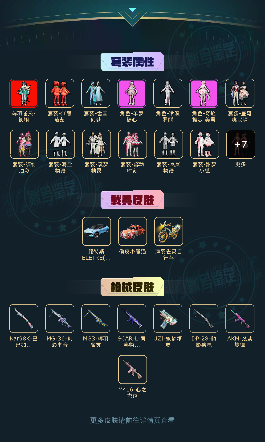 【粉色枪皮】M416-心之恋语/AKM-炫紫旋律/SCAR-L-青春物语/Kar98K-巳巳如意/UZI-筑梦精灵/MG3-辉羽雀灵/MG-36-幻彩电音