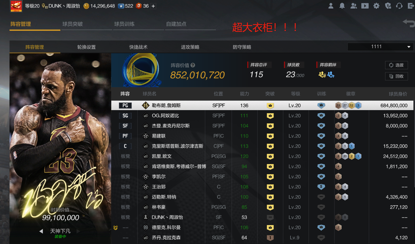 🔥【总8.7E】双时刻詹姆斯欧文波神OG杰登龙队+超大衣柜,天神下凡
