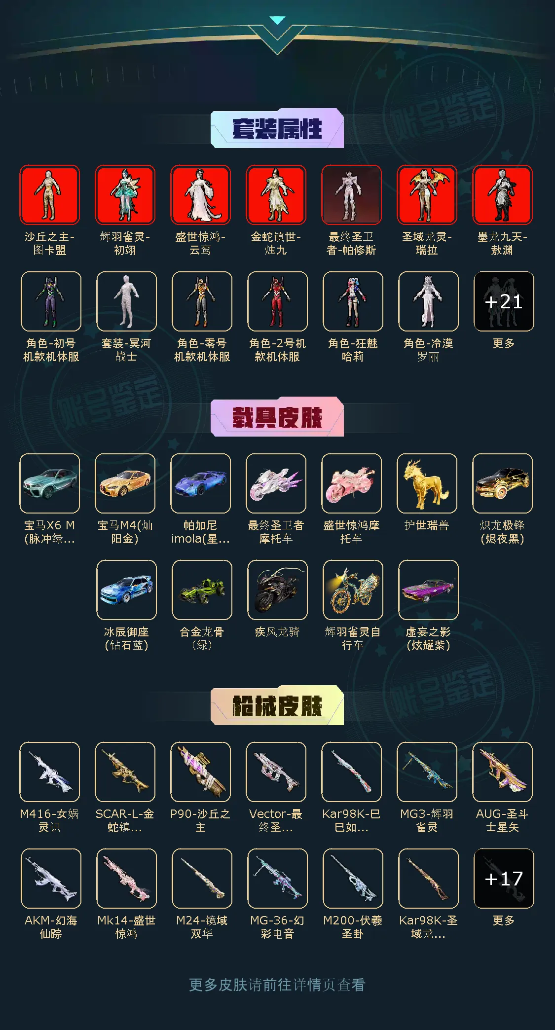 33粉,12载具,28特效枪,89套装,3王牌印记
