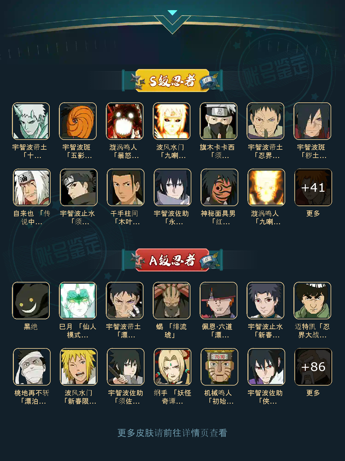 49S 88A 386忍者 宇智波止水「新春限定」/桃地再不斩「漂泊武士」/蝎 「绯流琥」/佩恩·六道 「漂泊浪客」/波风水门「新春限定」/宇智波带土 「漂泊浪客」/神秘面具男 「红夜之刃」/宇智波斑 「秽土转生·解」/自来也 「传说中的三忍」/波风水门「秽土转生」/千手柱间 「木叶创立」/宇智波止水 「须佐能乎」/漩涡鸣人 「九喇嘛连结」/大筒木舍人 「最终章」/宇智波斑「白面具」/艾 「忍界大战」/宇智波带土「忍界大战」/宇智波佐助 「永恒万花筒」/大筒木桃式/佩恩·天道「超」/旗木卡卡西 「须佐能乎」