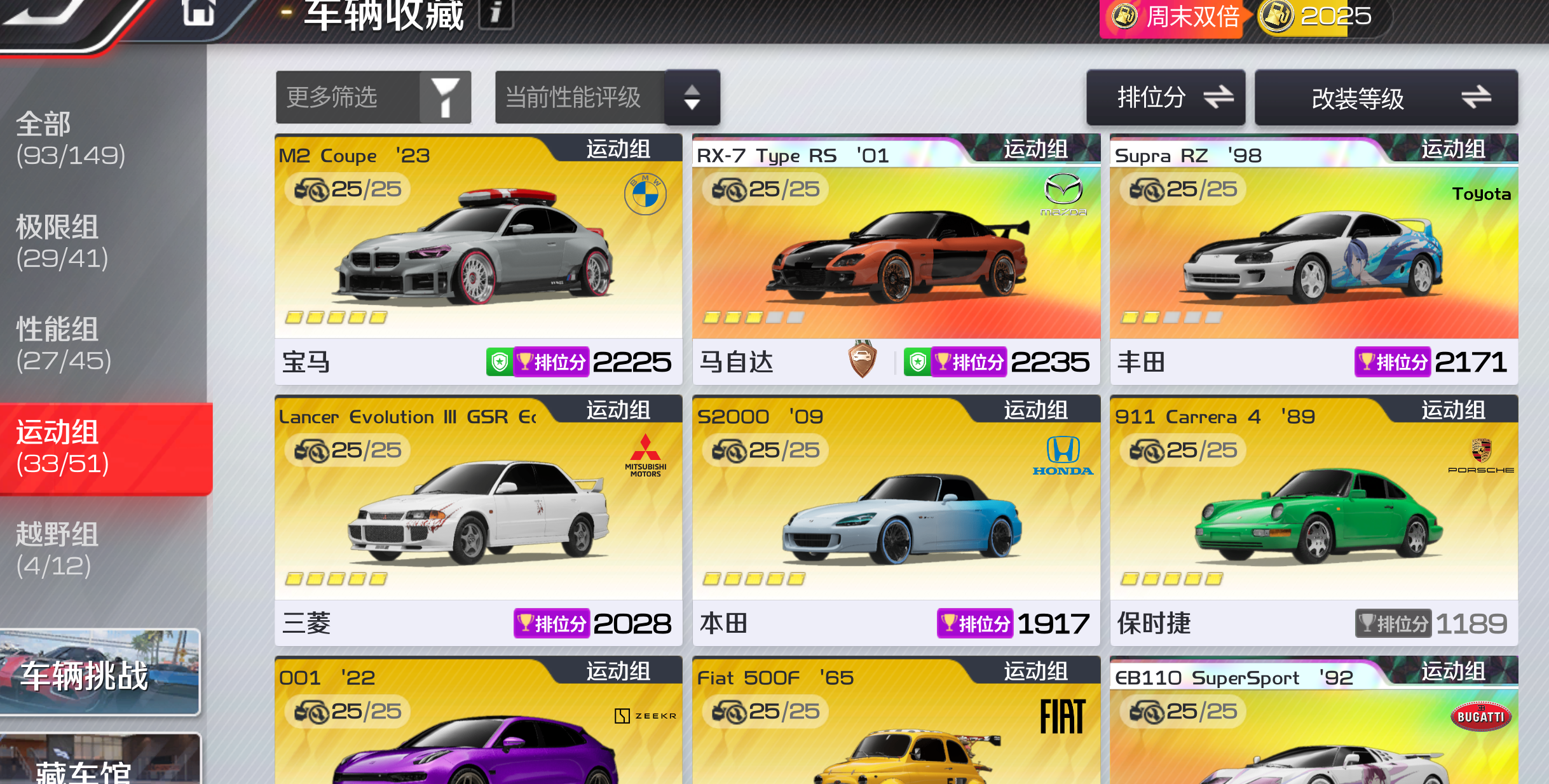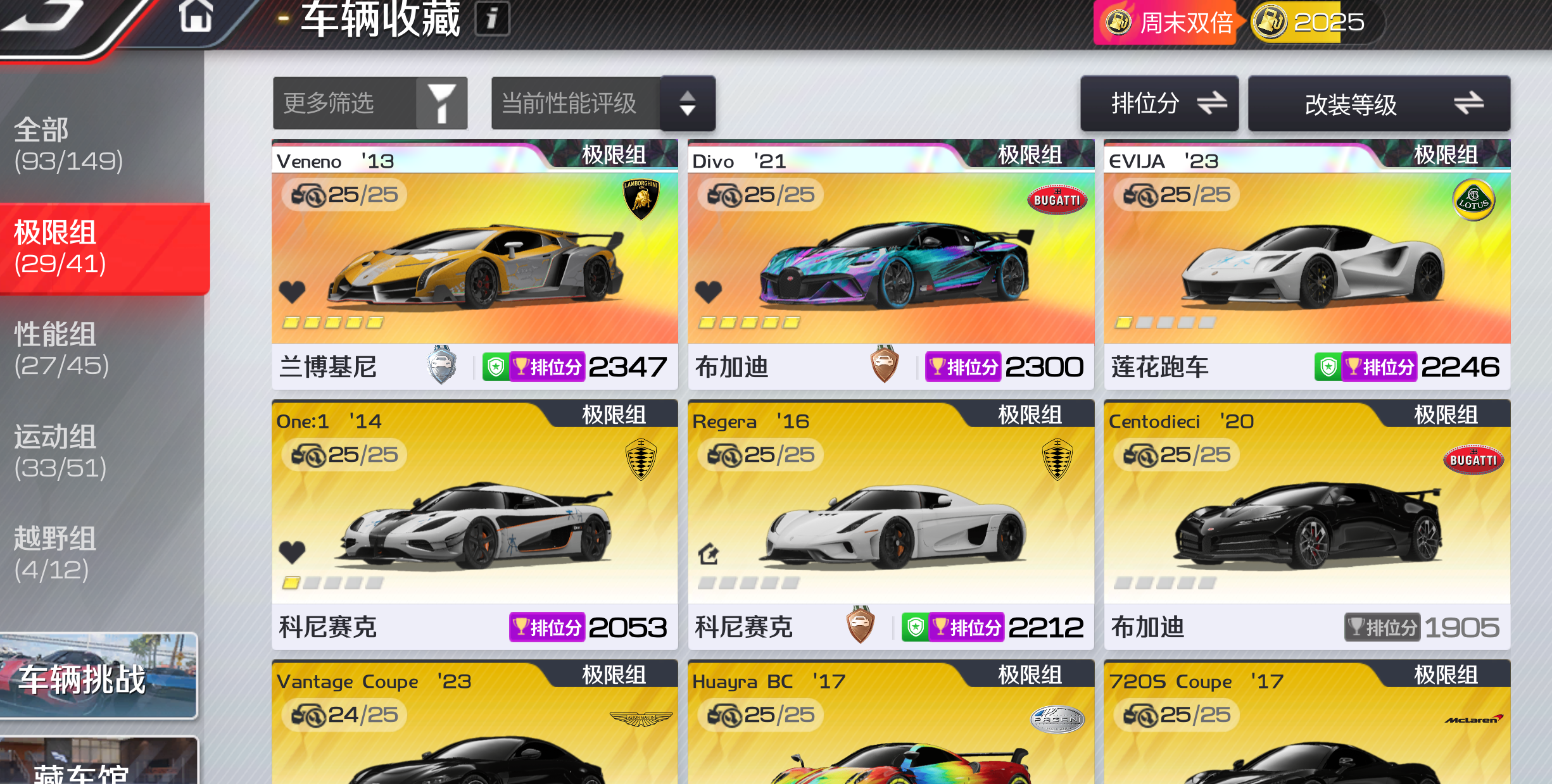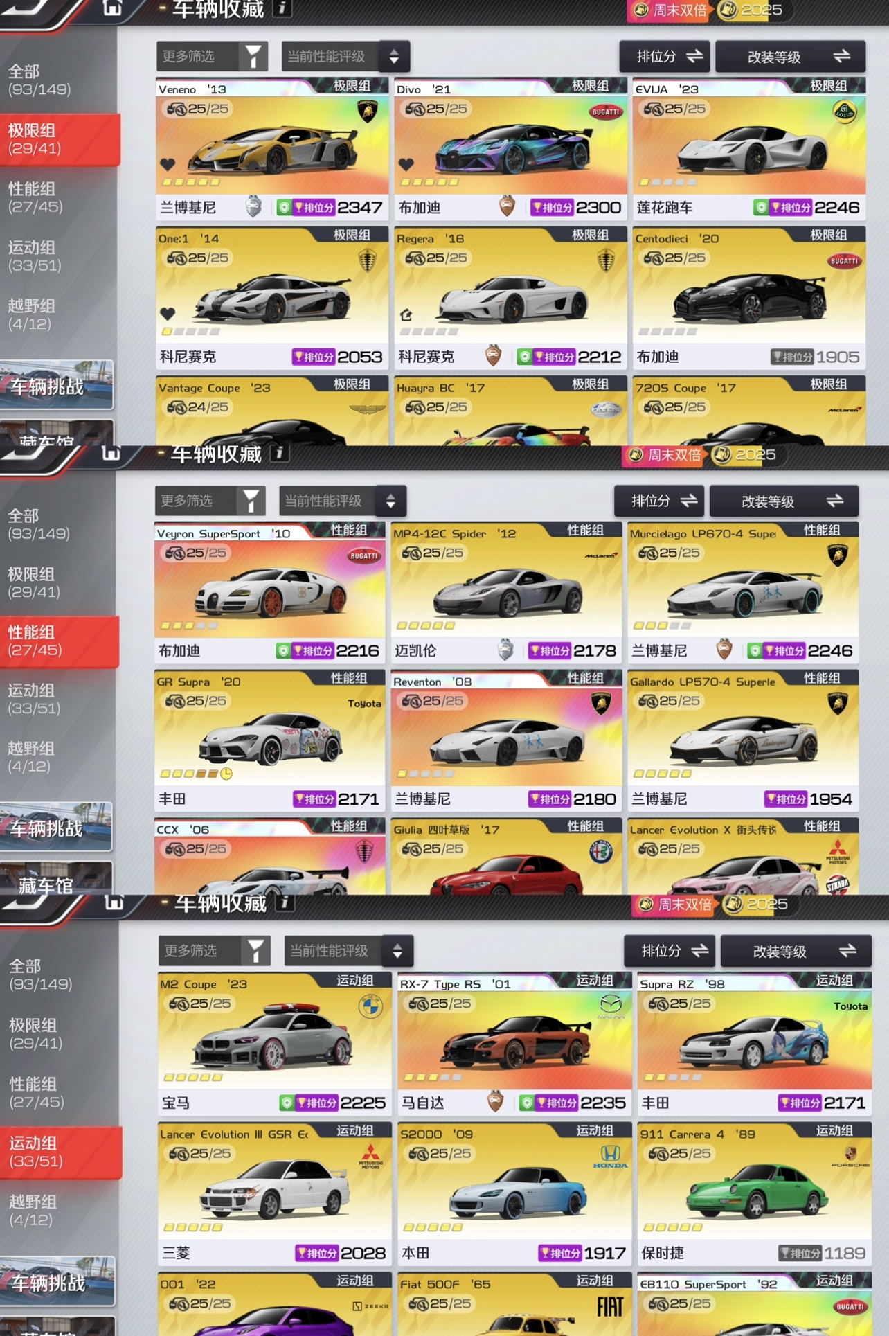 不要乱动资源 不要升级车辆改装 不要动钻石,后续还要用来升级其他车辆,谢谢!!! 极限组:T0金车基本齐全满改 性能组:T0基本满改 运动组:T0金