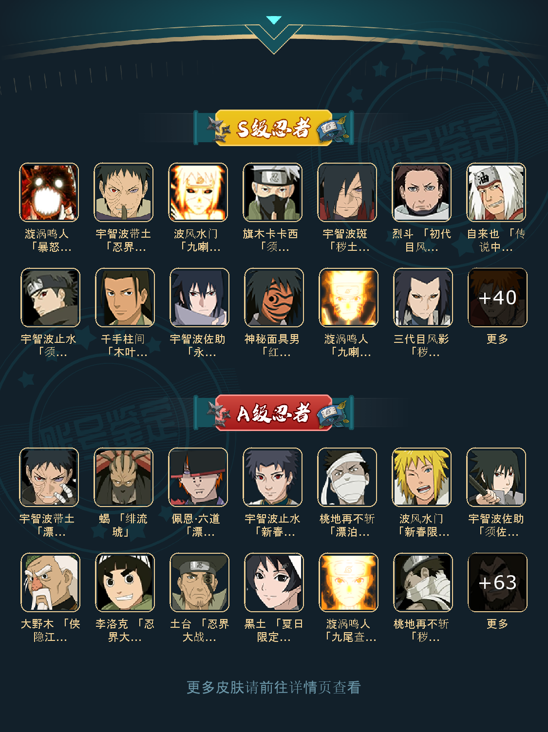 53S 75A 371忍者 宇智波止水「新春限定」/桃地再不斩「漂泊武士」/蝎 「绯流琥」/佩恩·六道 「漂泊浪客」/波风水门「新春限定」/宇智波带土 「漂泊浪客」/烈斗 「初代目风影」/神秘面具男 「红夜之刃」/宇智波斑 「秽土转生·解」/自来也 「传说中的三忍」/波风水门「秽土转生」/千手柱间 「木叶创立」/宇智波止水 「须佐能乎」/漩涡鸣人 「九喇嘛连结」/漩涡鸣人 「暴怒·第六尾」/宇智波斑「白面具」/宇智波带土「忍界大战」/三代目风影 「秽土转生」/宇智波佐助 「永恒万花筒」/佩恩·天道「超」/旗木卡卡西 「须佐能乎」/波风水门 「九喇嘛连结」