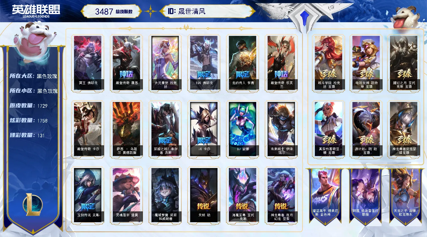 圣堂佛耶戈-清空商城-1728原皮-黑色玫瑰-高段位-3400皮完美号-云顶神话英雄!!!