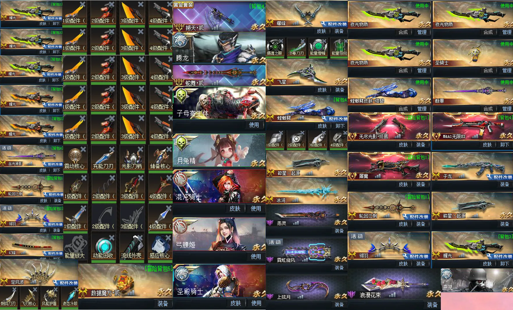 刀战天花板❤五把满配耀光撼天贰❤含光满螳螂满❤幻锋满藏锋满❤蛇舞贰轮回满魔方贰❤霓虹冰河塞壬碎星月兔