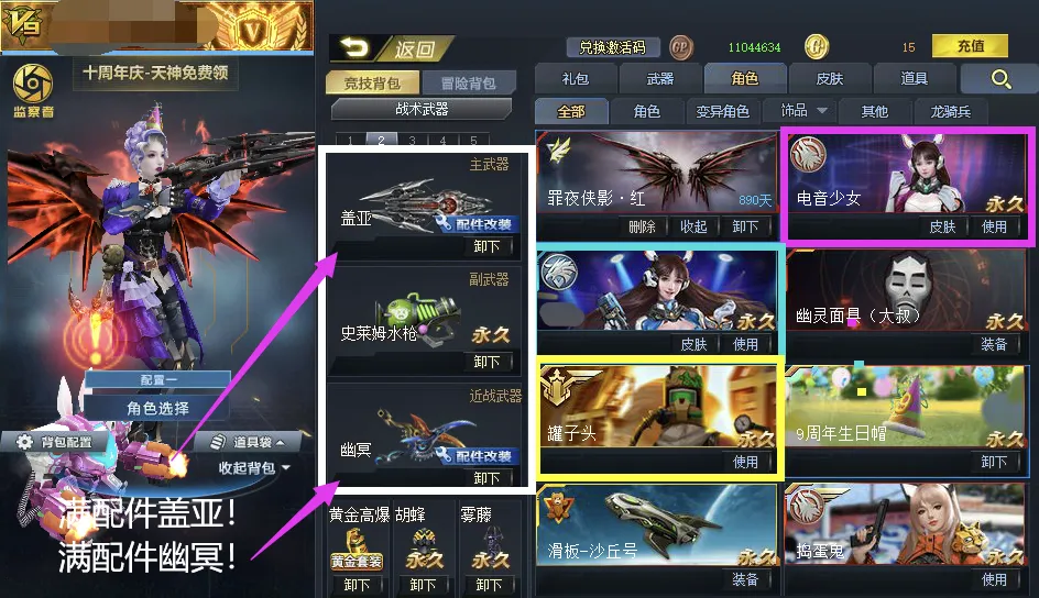 满同步率极地裁决二!影魔!血魔!蛇舞二!满配幽冥!满配核子裂变!满配盖亚!满配含光承影!三级罐子头!