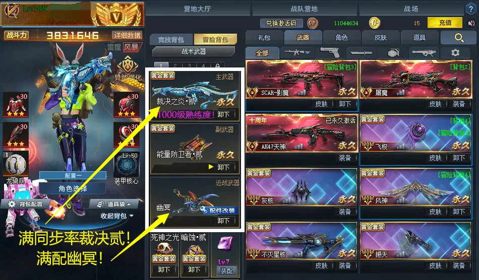 满同步率极地裁决二!影魔!血魔!AK天神!RPK天神!蛇舞二!飞梭!风神!不灭星河!撼天!涤罪壹!等等