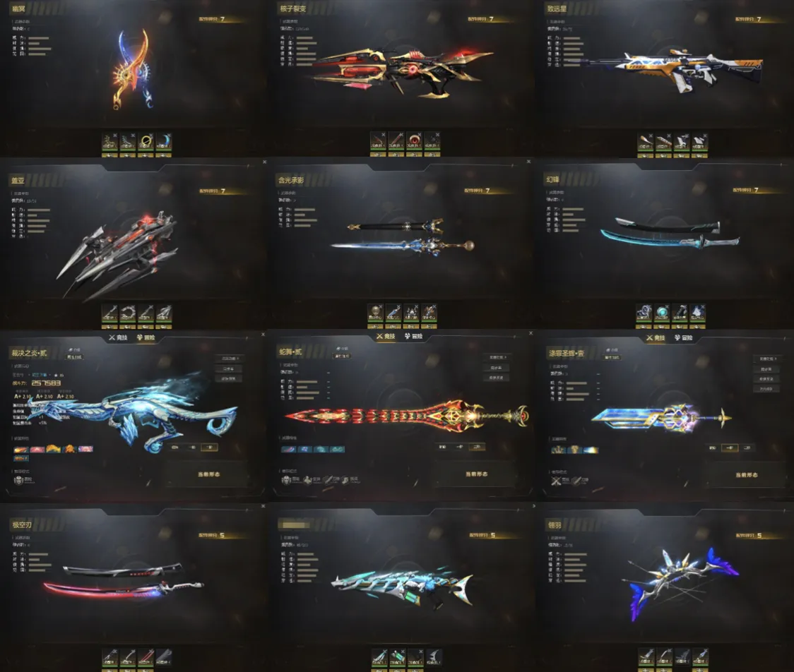 满配幽冥!满配核子裂变!满配盖亚!满配含光承影!满配幻锋!等等配件武器
