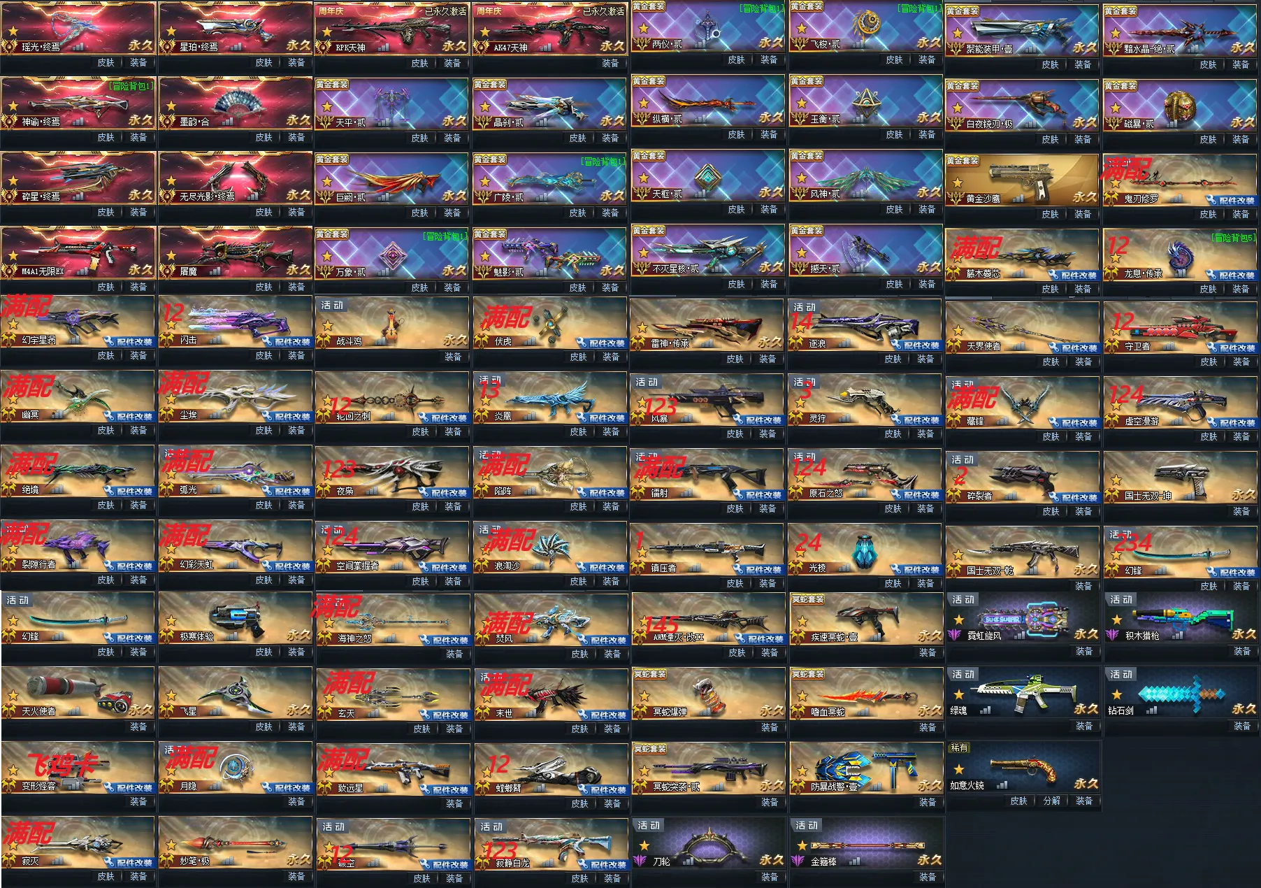AWM 湮灭 冥蛇套 霓虹旋风 积木 绿魂 钻石剑 火铳 刀轮 金箍棒