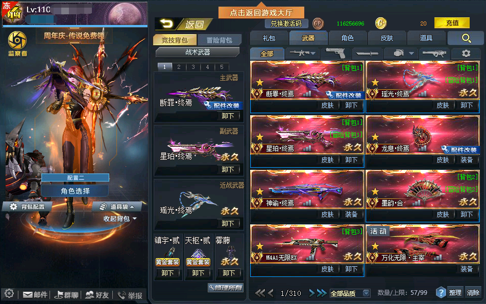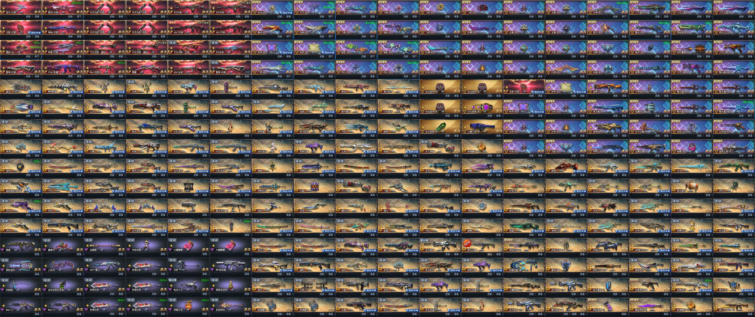 传说武器:◆断罪终焉(紫黛)◆瑶光终焉◆星珀终焉◆RPK主宰◆龙息·终焉◆神谕·终焉◆AK47主宰◆墨韵·合◆碎星·终焉◆SCAR-影魔◆无尽光影·终焉◆M4A1无限EX◆屠魔◆AK47天神◆万化主宰