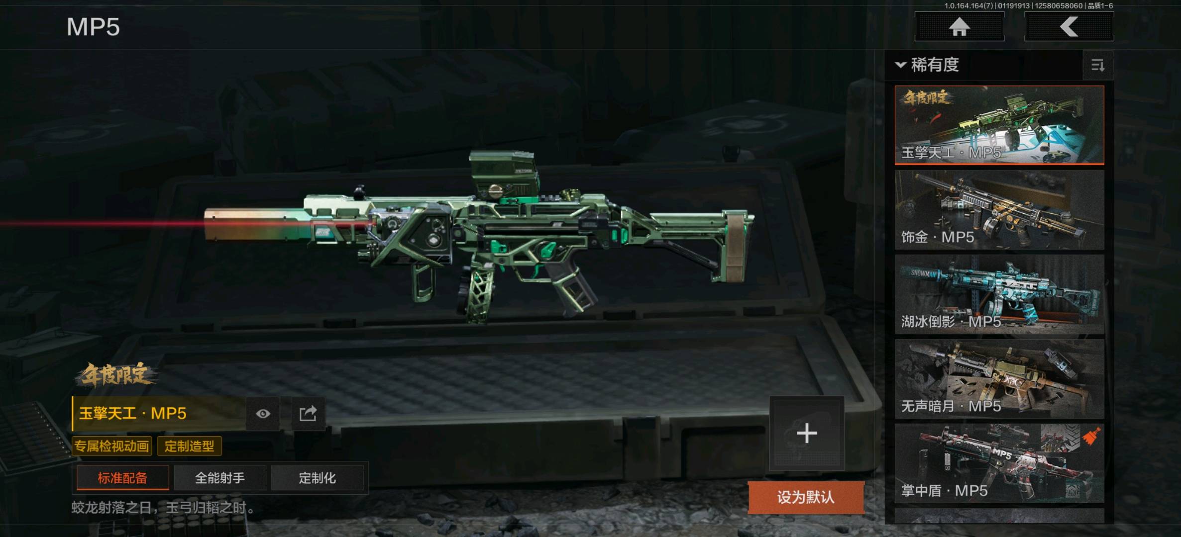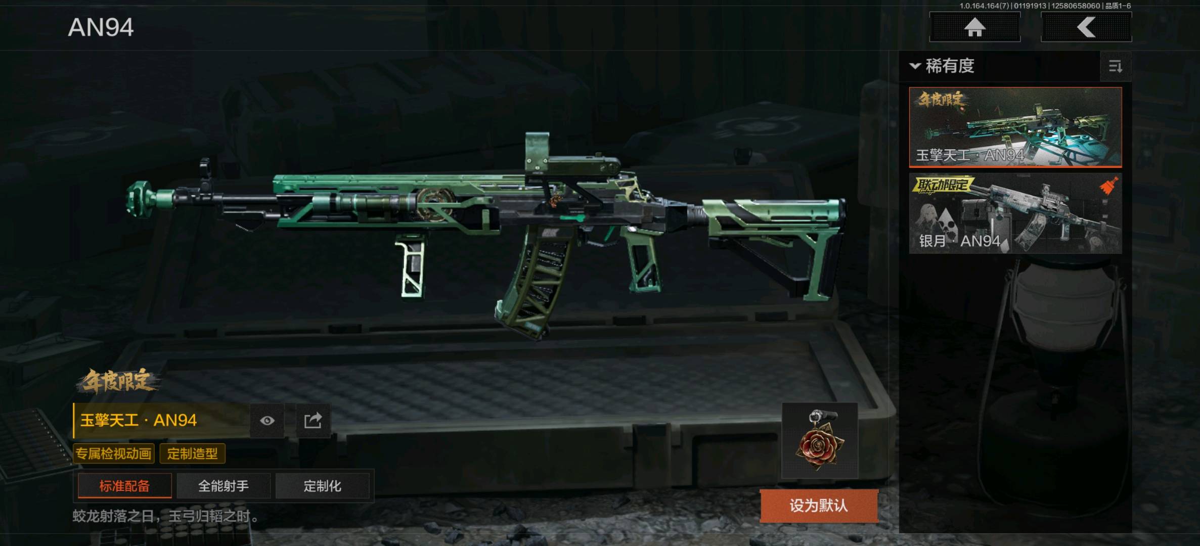 午夜梦魇FAL,堕落者H416,林中人FAL,冬夜AK12,银月AN94,蓝色咆哮H416,黄金FAL,冰河碎影MK14,战术大师VSS,长缨风掣RPK16