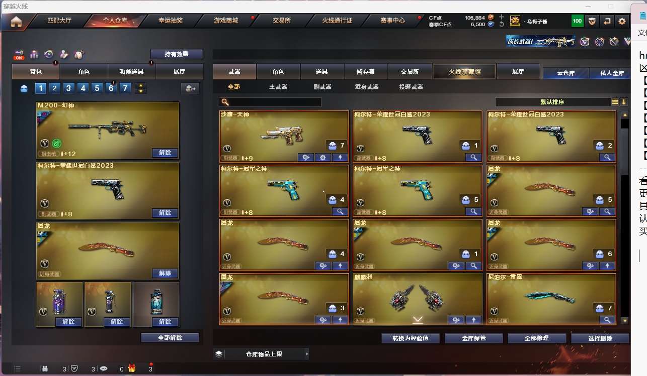 【亮点解析 幻神5皮带卡 星神三件套 裁决三件套 】【m200幻神+音效卡+星耀+ag24冠军+荣耀世冠白鲨+电流骇客+荣耀世冠白鲨2023+冠军之特*2】【98k星神+音效卡+璀璨】【传说辉光 传说夜影 】【g36c幻影】【qbz金色蔷薇+卡+冠军之薇】【火麒麟+卡+女团】【黑龙】【雷神+荣耀之魄+白鲨冠军+s18冠军】【毁灭+女团+荣耀之怒】【裁决+卡+巅峰荣耀】【炽芒蝶刃+荣耀世冠白鲨2023】 【武器:青龙 王者玄武 王者雷影 炼狱*2】 【5手呛:天神 冠军之特*2 柯尔特荣耀世冠白鲨*2】 【15刀具:屠龙*5 麒麟刺 尼泊尔雷霆 竞技荣光 玄豹 王者之锋*4 】 【9雷套:竞技荣光雷*4 玄豹雷*5】 【小人呛:雷神小红 幻神魅影 cop白鲨 】 【音效卡:炼狱音效卡 星神音效卡 幻神音效卡 金色蔷薇音效卡 裁决音效卡 火麒麟音效卡 】 【四防角色:玄豹 王者魅影 王者刀锋 】【隼 】