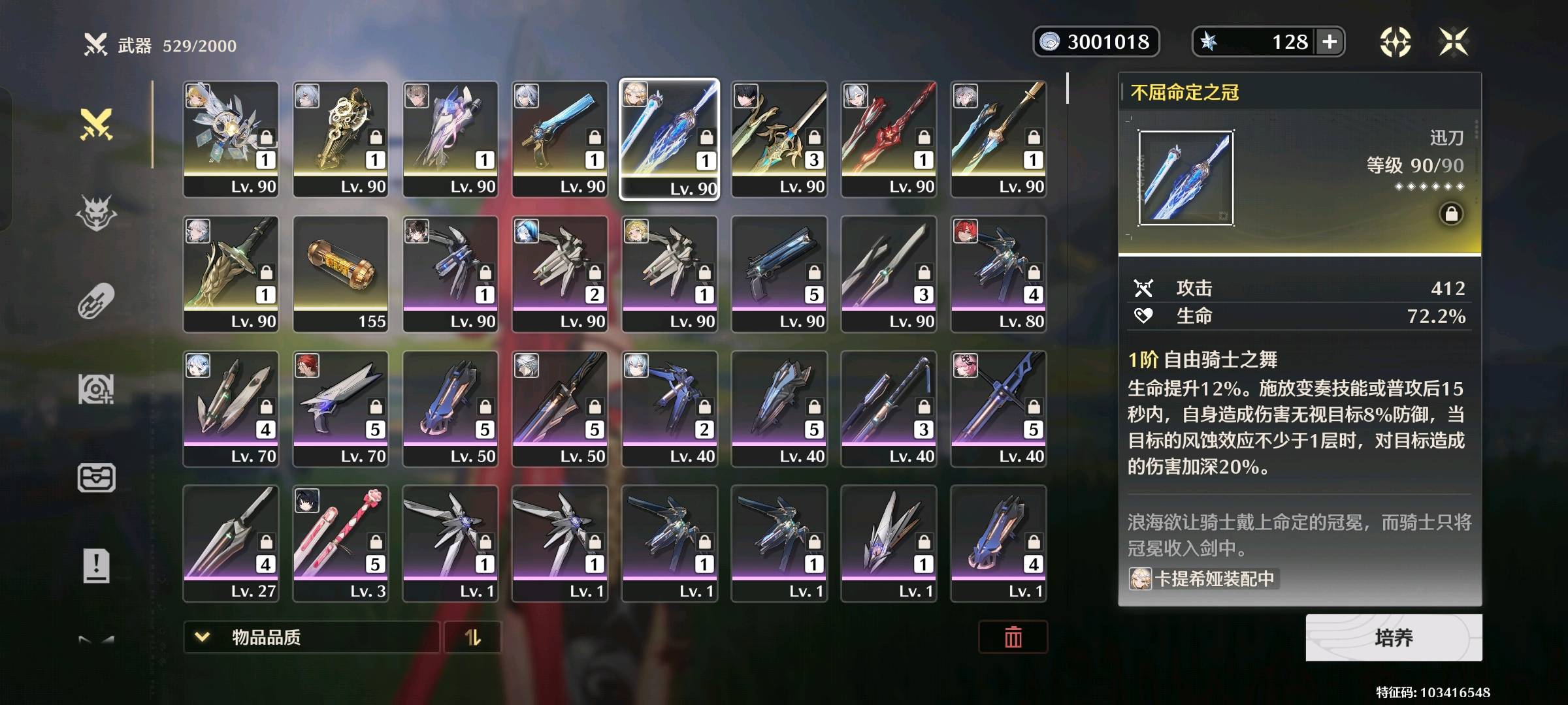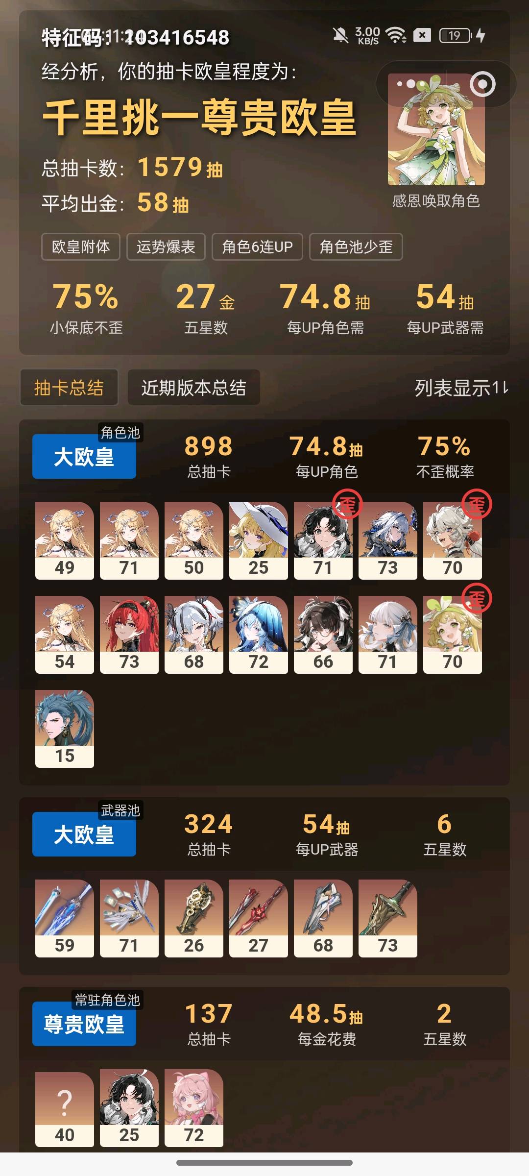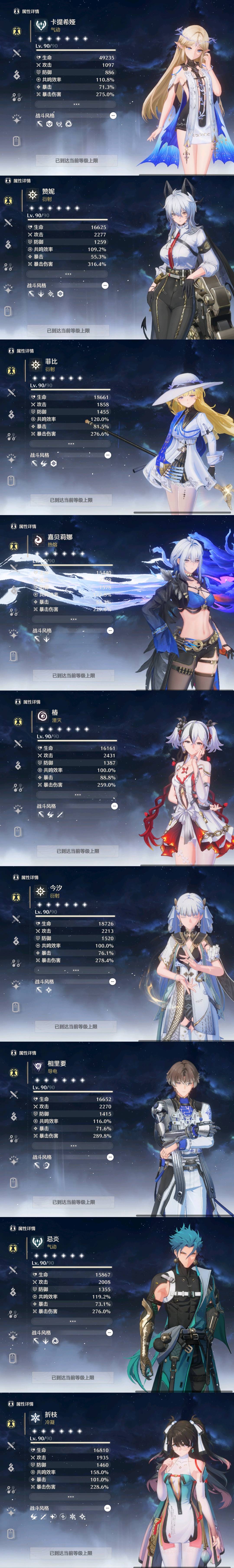 ♥90级,30黄,17个五星角色:3+1卡提西亚,嘉贝莉娜,赞妮,菲比,维里奈,椿,今汐,凌阳,长离,守岸人,吟霖,安可,相里要,卡卡罗,折枝,