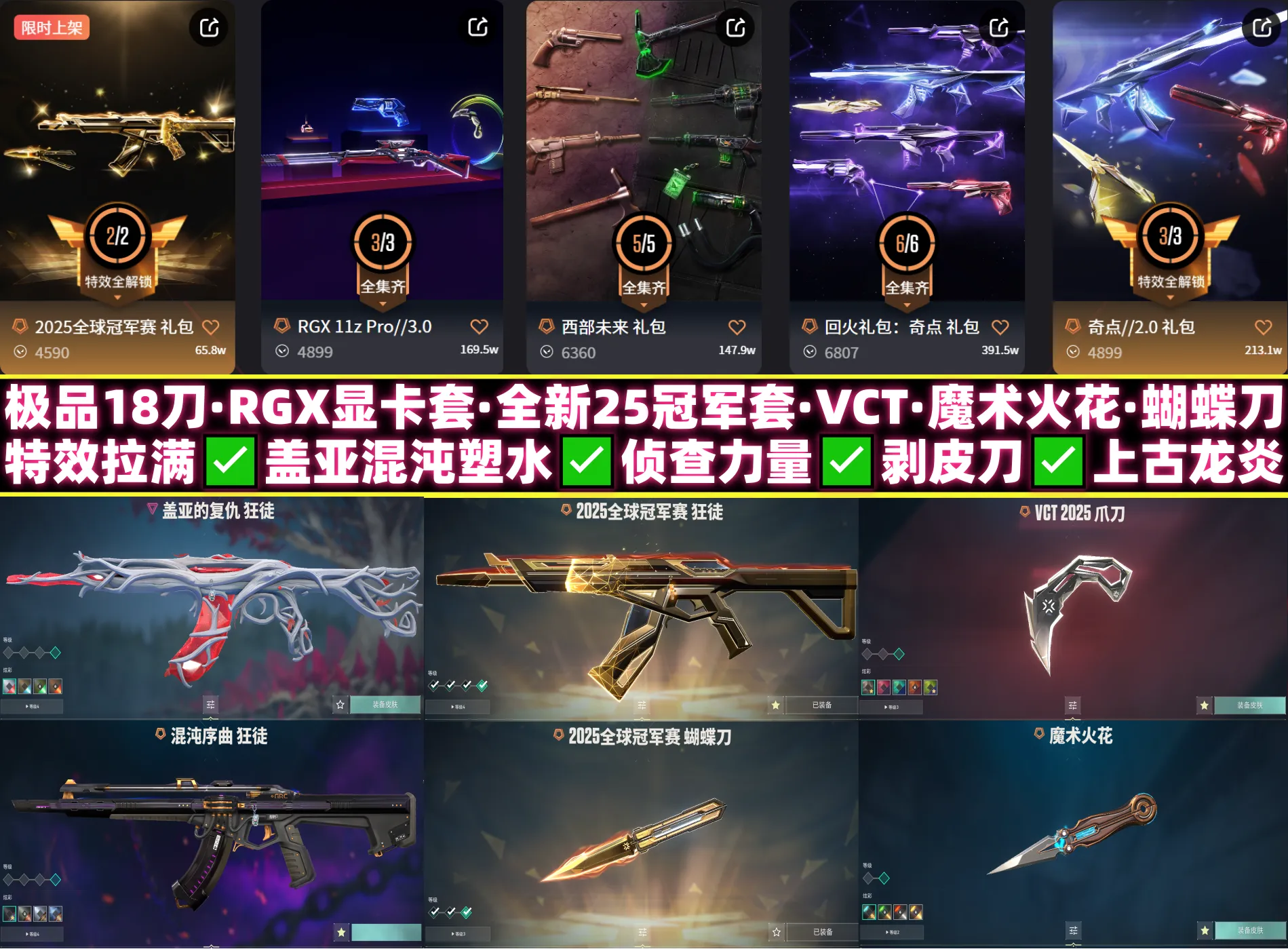 【当前段位:黄金II】全新套装✅特效拉满✅25冠军套✅魔术火花RGX显卡套紫金爪刀VCT镭切✅盖亚混沌塑水噬影者侦查力量✅