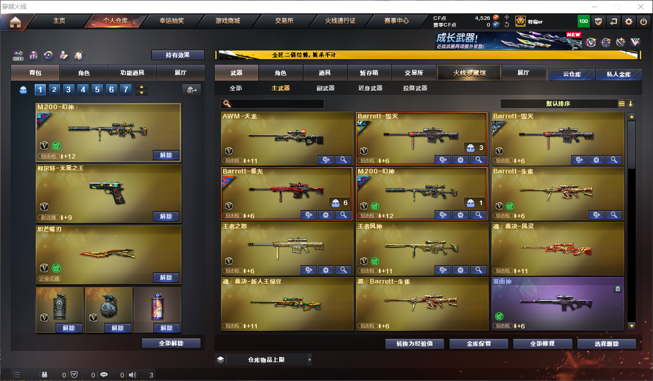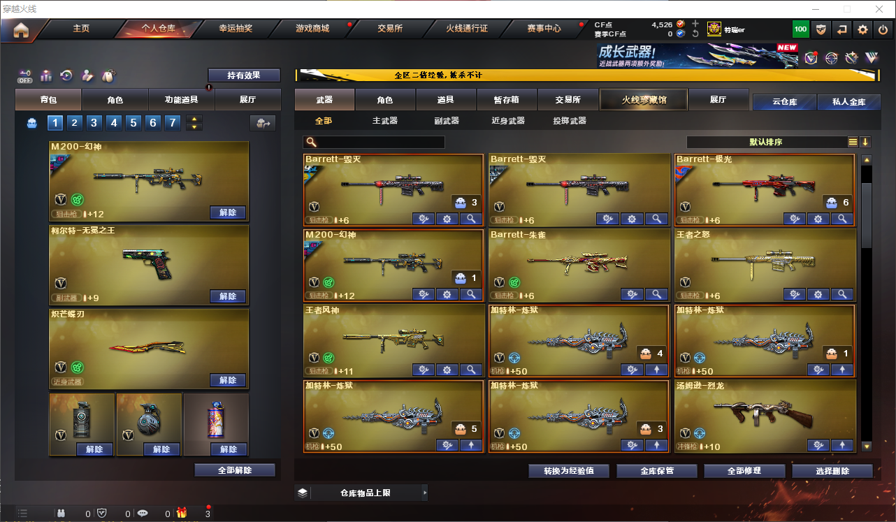 101v18王者2炫金【M200幻神+幻神音效卡+幻神CFS2022+幻神荣耀世冠白鲨+幻神黄忠+幻神紫橙光效/炽芒蝶刃/王者风神-觉醒版/Barrett-朱雀/M4A1-青龙/QBZ03-金色蔷薇/白虎-电玩蓝兔/4炼狱/烈龙/6修罗/2天神/Glock18-武圣/柯尔特-无冕之王/柯尔特-冠军之特/1套雷霆雷/1套神工天巧雷/2套雷霆王者雷/黄金猫猫手套/】【雷神音效卡/黑骑士音效卡/极光音效卡/毁灭音效卡/火麒麟音效卡/】【/黑龙-冠军之武/擎天-冠军之击/毁灭-荣耀之怒/屠龙-荣耀之锋/雷神-白鲨-CFPLS14冠军/黑骑士-CFS2021/QBZ03-冠军之薇/QBZ03-荣耀世冠白鲨/ScarLight-白虎-冠军之虎皮肤/火麒麟-巅峰荣耀/天龙-能量核心//毁灭-魔灵皮肤/雷神-脉冲核心/极光-能量核心/火麒麟-雷神/修罗-星空/雷神-星空/毁灭-星空/雷神-暗月/火麒麟-心动糖果/修罗-能量核心/毁灭耀金皮肤/黑龙-能量核心/AK47-老兵传说皮肤/火麒麟-AG战队皮肤/火麒麟-CFSTAR/AAWM-天龙-传奇白鲨/】【/葵/兰-巾帼英雄/晴雅/审判者/堕落女神/王者之瞳/新海豹突击队/乔伊教练/云海玲珑/】【/王者霜心-觉醒版/王者之心/王者之翼-觉醒版/王者芳薇/QBZ-03-王者蔷薇-觉醒版/王者之怒-觉醒版/COP357-雷霆王者/炫金千变/炫金天神/白虎-迷你小艾/超新星-悦享/COP-白鲨/双面神/乱世-超越2/征服者-超越1/】【烟雾保护头盔/战舰头盔/超级护目镜/闪光护目镜/战舰护目镜/超级对讲机/全能枪王背包/战舰背包/炫彩背包/EP战队收纳包/A背包套装扩展券/全背包/步枪弹匣长时效/永久防弹衣防弹头盔手雷包C4工具钳