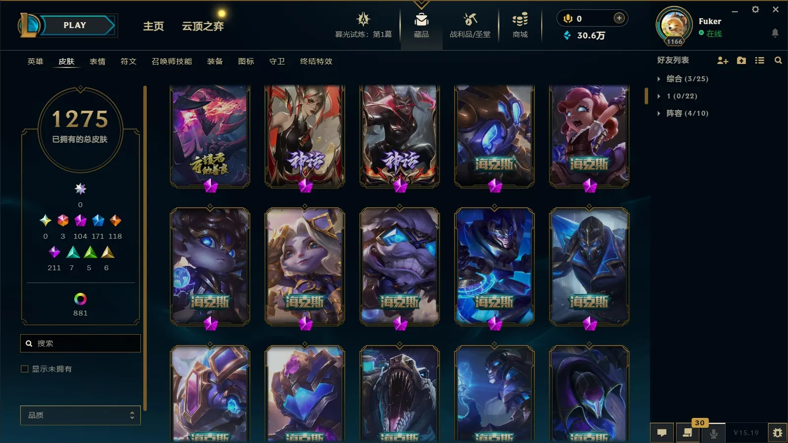 - 神话皮肤数量: 107