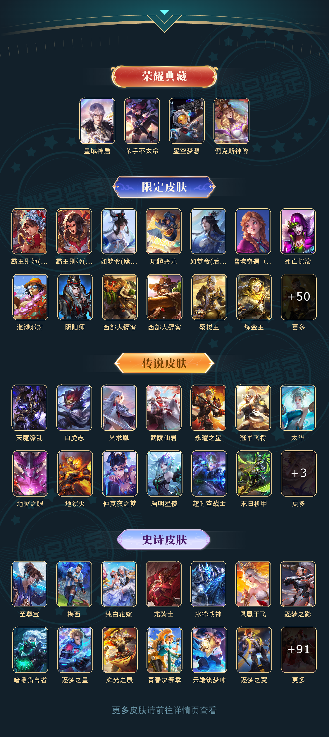 贵族等级V10,段位尊贵铂金,英雄数量122,典藏皮肤数4,皮肤数量339,纯白花嫁/天魔缭乱/至尊宝/梅西/白虎志/星域神启/纯白花嫁/天魔缭乱/至尊宝/梅西/白虎志/星域神启