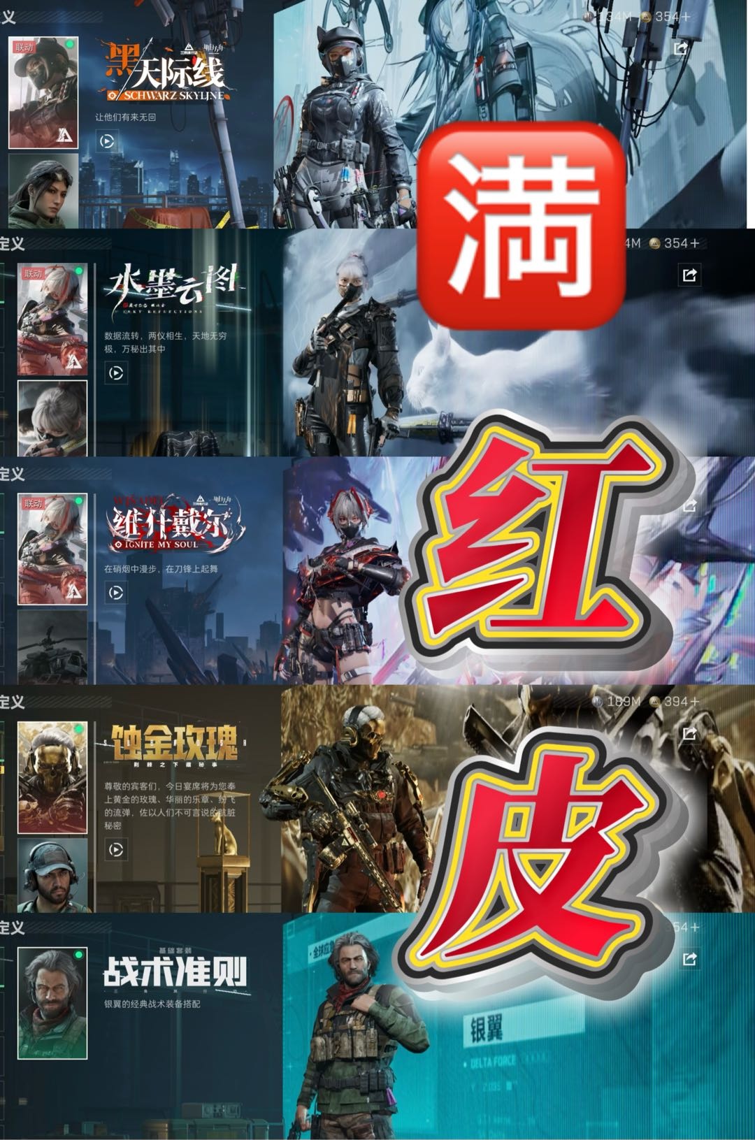 【12.91w哈夫币】哈夫币免费用~🈵红皮2刀皮🖤满体新9格🖤北极星/维什戴尔/午夜邮差/红狼/麦晓雯🖤多捆绑包