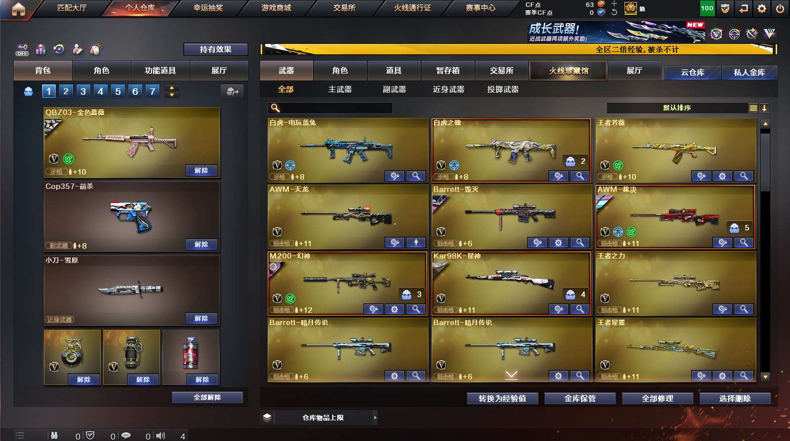 5炫金》《12王者》《传说影煞》《m200幻神+冠军之幻+宠儿+cfs2022+幻神音效卡》《98k星神+星神破竹》《裁决+裁决凤灵+裁决流光秘银》《王者星霆》《柯尔特无冕之王 usp雷暴 cop旗袍 1911大黄蜂》《炽芒碟刃》《白虎电玩蓝兔》《白虎之魄》《朱雀》《王者芳薇》《qbz金色蔷薇》《烈火》《毁灭》《火麒麟》《雷神》《黑骑士》《4盘 斯泰尔蝴蝶》《爆炎激光超越max》《aa12擎天柱》《试炼破坏者》《炼狱迷你小钢》《4防晴雅 岚兮儿 奇洋探员满配 乔伊教练满配 云海玲珑满配 女战神》《超级背包 虎牙炫彩背包》《毁灭音效卡 雷神音效卡 黑骑士音效卡》《qbz03cfs2024 雷神rlgdcfpls18 黑骑士冠军之势》