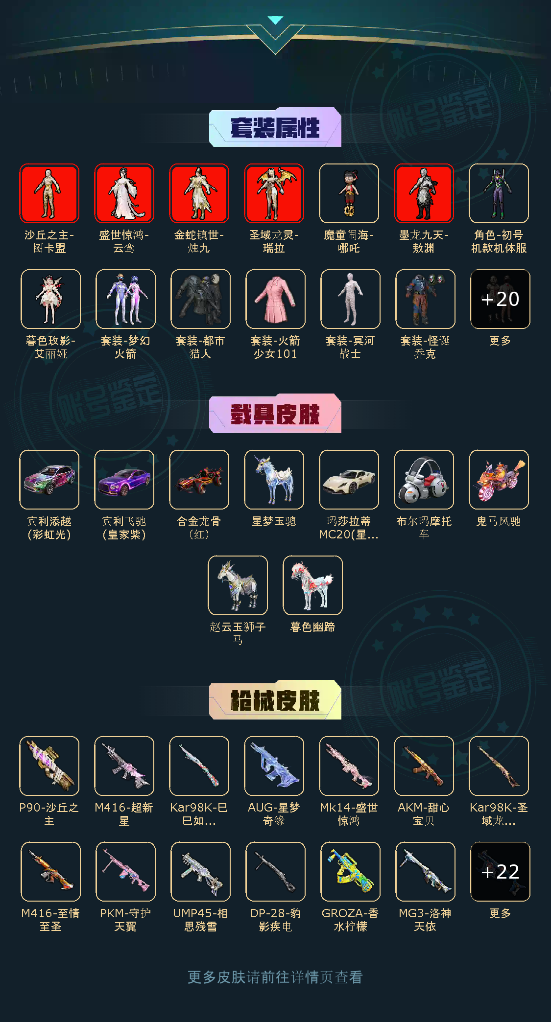 30粉,9载具,279套装,25王牌印记,无敌战神历史最高段,206184热力值 平底锅-林间仙鹿/AKM-甜心宝贝/SCAR-L-童趣迷兔/AUG-星梦奇缘/AUG-星之彼岸/GROZA-香水柠檬/M416-五爪金龙/AKM-魔法神域/M416-墨龙九天/M416-至情至圣/AUG-妙趣可丽/SCAR-L-机甲封神/M416-超新星/蜜獾-辉耀战甲/AKM-梦之光华/SCAR-L-魔童闹海 哪吒/Mk14-盛世惊鸿/Mk14-闲梦青缨/DP-28-暗夜鎏金/M249-彩虹甜喵/PKM-守护天翼/DP-28-圣堂之誓/MG3-洛神天依/DP-28-豹影疾电/UZI-绮梦青鸾/汤姆逊-怪笑疯兔/P90-甜蜜草莓/Vector-环太平洋/UMP45-相思残雪/P90-沙丘之主/烟雾弹-猫咪绅士/破片手榴弹-粉粉猫爪/Kar98K-圣域龙灵/AWM-花间之火/Kar98K-巳巳如意/宾利飞驰(皇家紫)/宾利添越(彩虹光)/鬼马风驰/合金龙骨(红)/玛莎拉蒂MC20(星石白)/暮色幽蹄/星梦玉骢/赵云玉狮子马/照夜玉狮子/布尔玛摩托车/