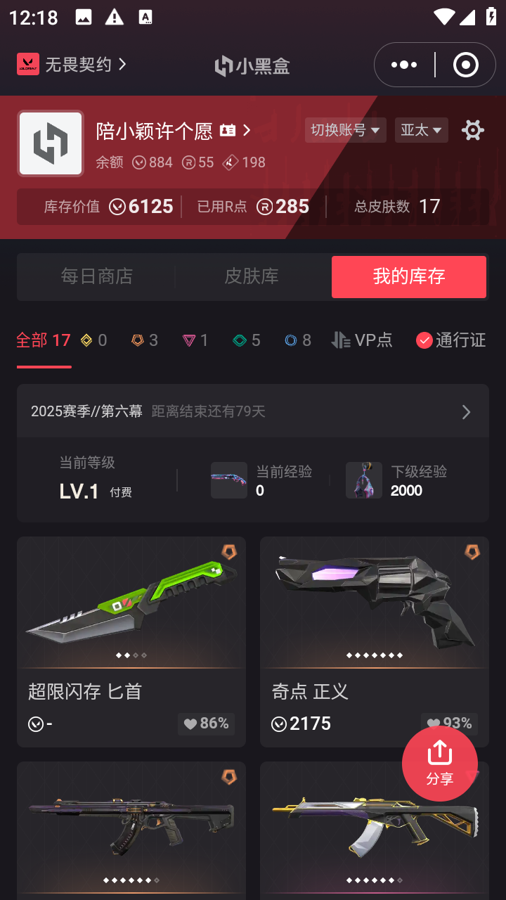 看描述6125库存♥1刀♥2ak♥奇点 正义♥混沌序曲 狂徒♥紫阙金琅 狂徒♥