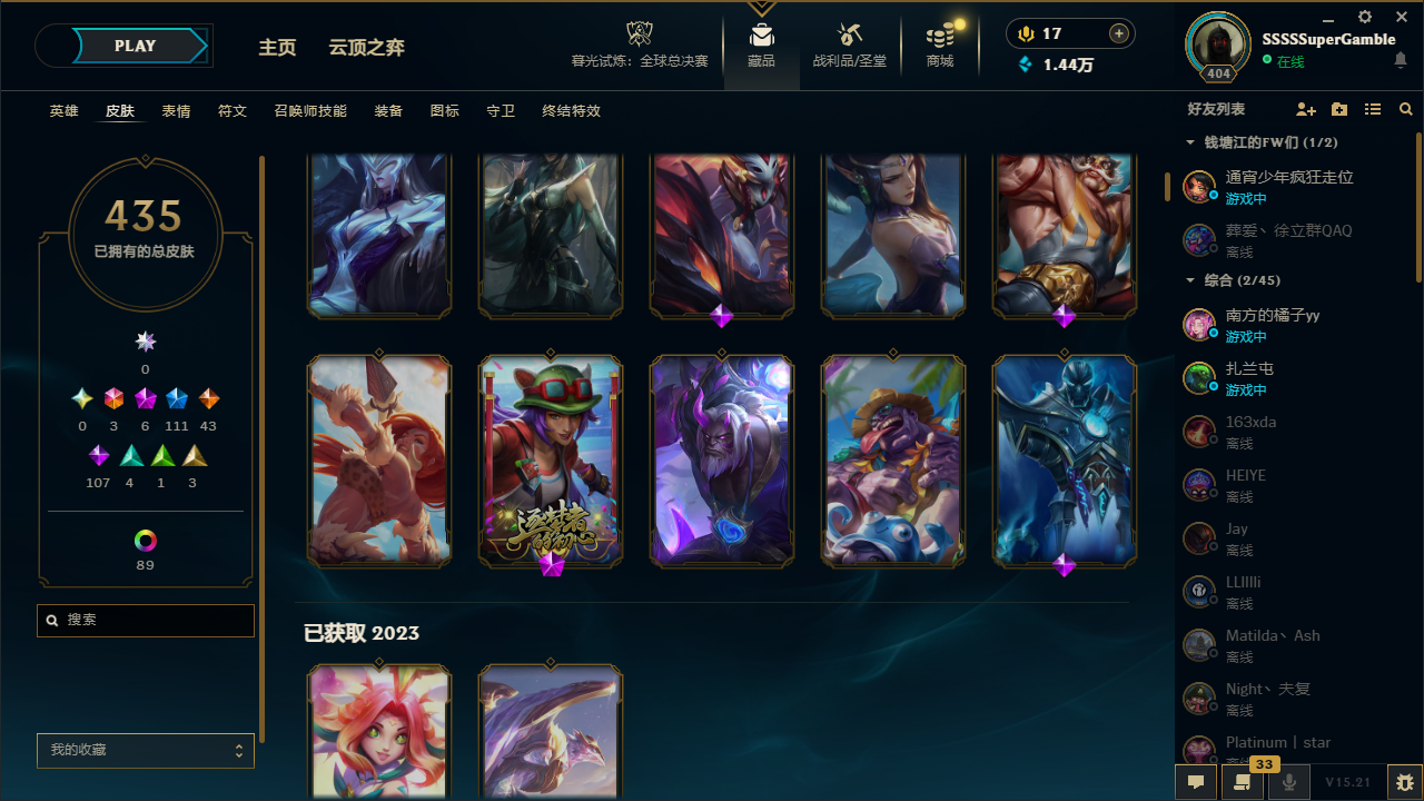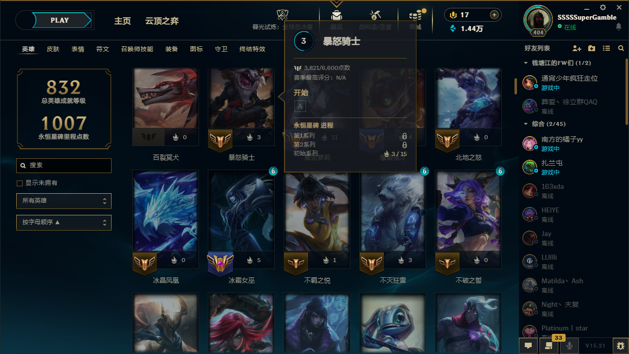 满英雄|544皮肤|可排位|终极3|限定111|传说43|史诗107|
