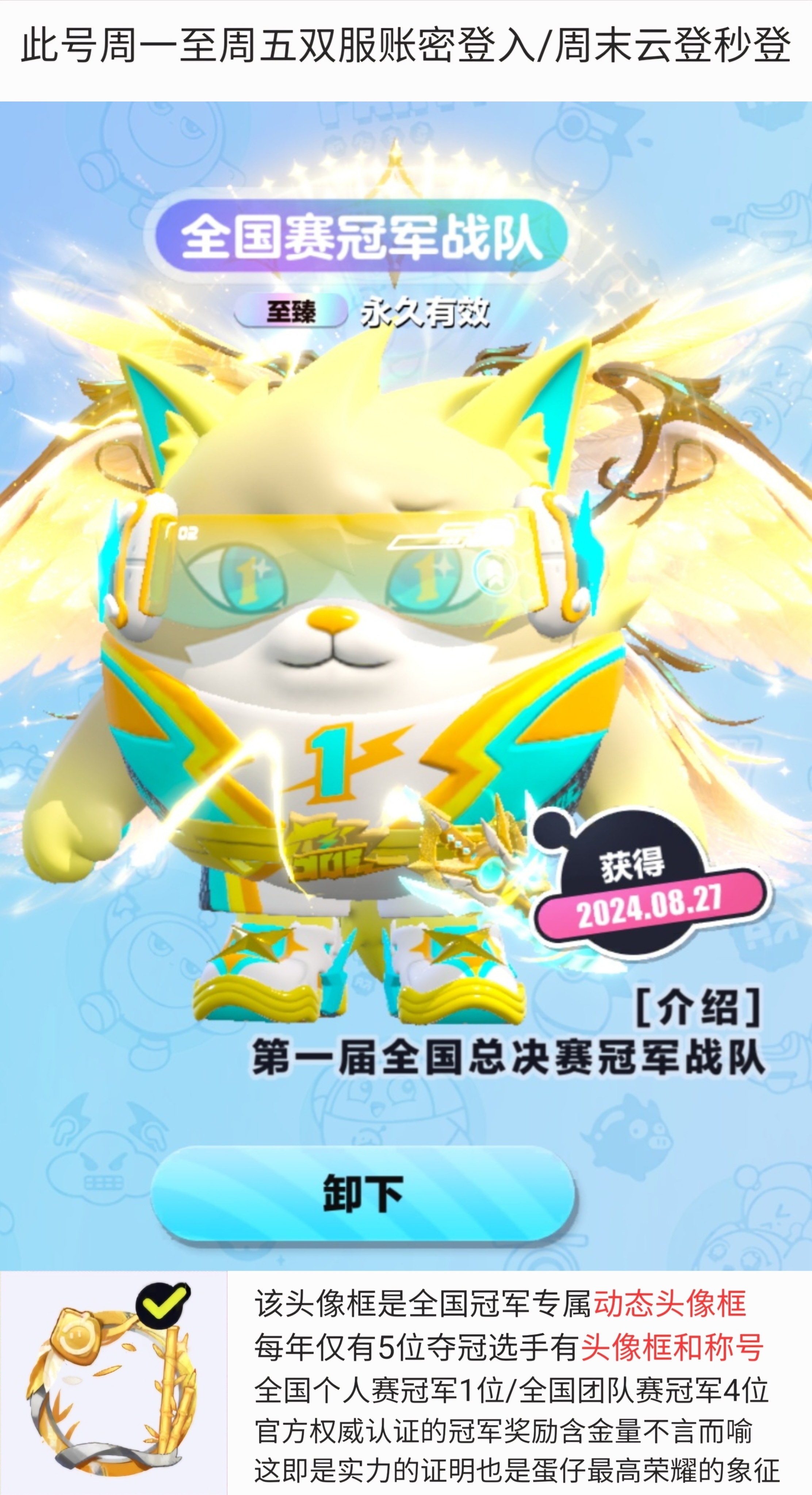 【苹果】 双服账密💎全国比赛冠军号🔥榜一闪电阿存💎冠军专属动态头像框及称号💎双人飞炽天使/光辉永夜幽冥