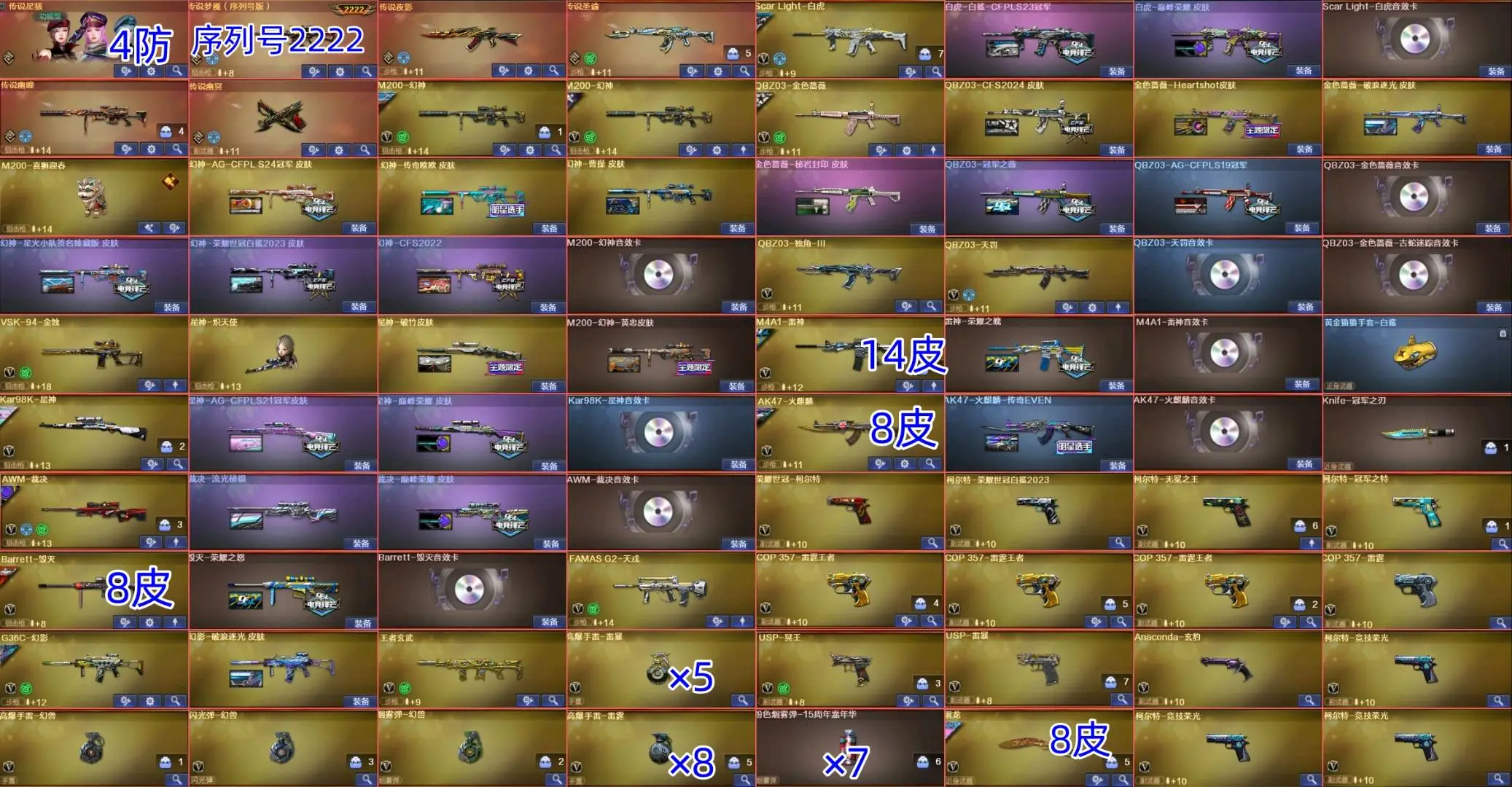 【允许排位】幻兽幽瞳序列号②②②②六传说✨⑩色幻神带卡星神三皮卡裁决双皮卡✨十几把副武器全音✨双泡泡象4把蝴蝶刀