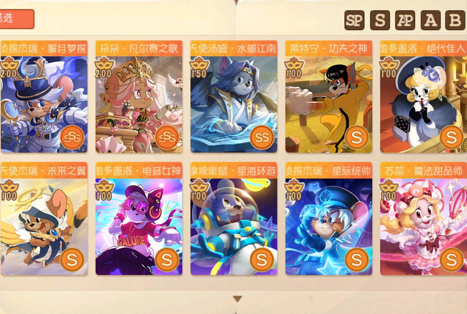 【安卓】 [A类号9SSS+3SP账号]改账密用防出错+1SS[4399渠道服]26金皮+4399渠道猫和老鼠